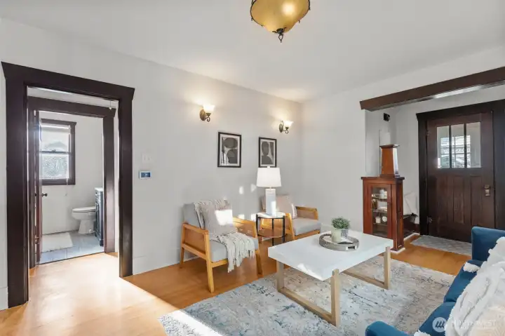 Begin your next chapter in life with this classic Seattle Craftsman. This 1500sq ft, 4bd, 1.75 ba home blends old world charm and modern updates with refinished hardwood floors, original trim and mudroom alongside air conditioning, new kitchen, stainless steel appliances, updated bathrooms, fresh paint and carpet. A 2-car driveway allows for parking off the back of the home while the front sits perched above street level. Plant your dreams in the garden box and enjoy this low maintenance property. Thoughtful updates include newer siding, a 2yr old Train heat pump/AC, vinyl windows downstairs, and a 50yr warranty on the sewer line. Extra storage with an exterior shed and finished crawl space hiding as a bedroom cabinet. Enjoy the restaurants, shops, and cafes of Columbia City only a mile up the road! Welcome home!
