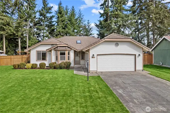 This home is a must see!! Clean, well maintained, custom built rambler, located on a quiet dead-end street, on South Hill. The fantastic home features a great open concept layout, and is perfect for first-time homebuyers, or those looking to downsize or retire. Situated on a spacious .29 acre lot, this home features a fully fenced, private backyard with a beautifully maintained yard and sprinkler system. Enjoy the large back patio, new in 2023, perfect for relaxing or entertaining. There is also a large garden shed with electricity and lighting, great for storing lawnmower, landscaping tools and more. Inside, you’ll find a smart, split floor plan, with the primary bedroom on one side of the home for added privacy. Vaulted ceilings and a freestanding wood stove create a warm and inviting living space. The kitchen offers stainless steel appliances, a gas oven/stove, cabinets with convenient pull-out drawers, and ample counter space. Garage is insulated, fully finished (tape, texture, paint), and features storage shelves that are included. Durable concrete tile roof provides protection for years to come. Near Rogers High School, just minutes to Costco and the South Hill Mall, with quick access to Highway 512, downtown Puyallup and all that South Hill has to offer. Schedule a visit today!!