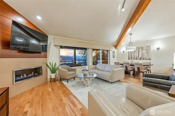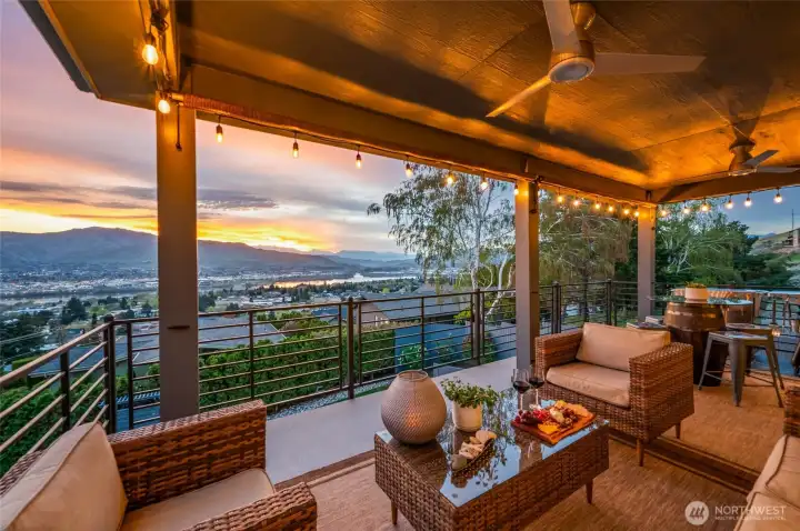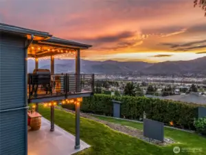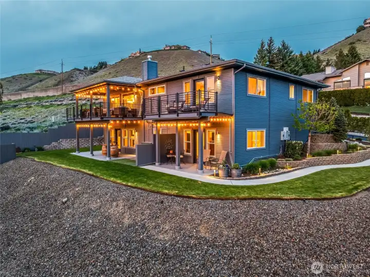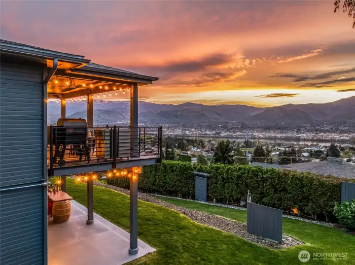 Perched above the valley, this exceptional property captures sweeping views of the Columbia and Wenatchee Rivers, surrounding mountains, and sparkling city lights below. Thoughtfully updated, the home features newly refinished red birch floors, fresh interior and exterior paint, and new carpet—all designed to complement and highlight the stunning scenery. The kitchen showcases custom horizontal-grain sapele mahogany cabinetry, slab quartz countertops, and stainless steel appliances. A reimagined primary suite offers a spa-like bath positioned to take full advantage of the panoramic views. Designed for both function and lifestyle, the home includes a spacious mudroom, wine cellar, and abundant storage throughout; including a massive 3-car garage with custom built-ins and two substantial outbuildings ideal for garden or gear storage. A private, sound-insulated 900 sq ft guest suite with full kitchen and bath offers flexibility for guests, STR income, or multi-generational living.