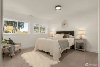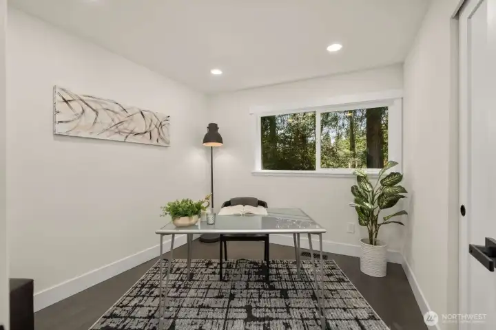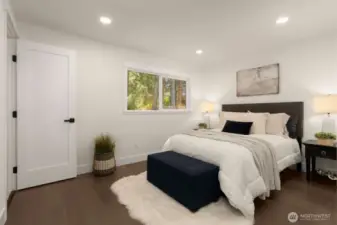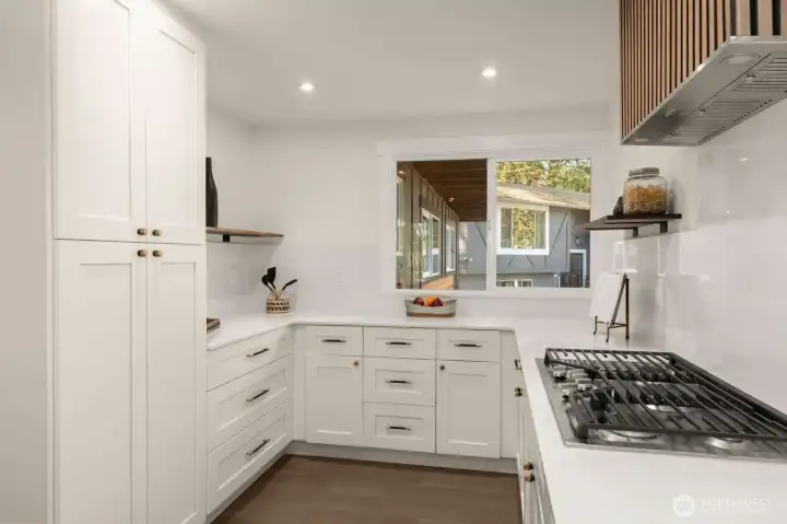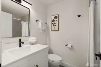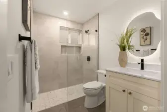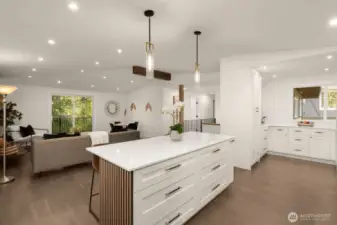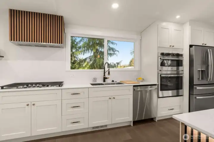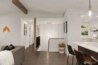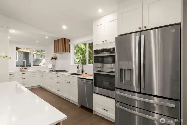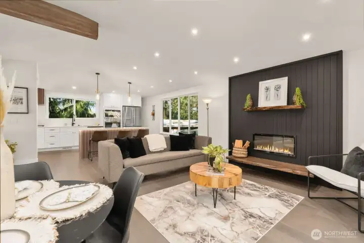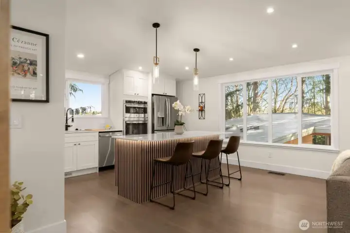 Meticulously reimagined 2,300 sq ft home on a quiet cul-de-sac, backing to a protected greenbelt that can never be developed. Located in the highly sought-after Northshore School District, this 5 bed, 2 3/4 bath residence offers the perfect blend of privacy, space, and modern design. Vaulted ceilings in the main living area create a bright, open feel, complemented by an effortless flow ideal for everyday living and entertaining. The chef’s kitchen features custom cabinetry, quartz island with bar seating, and premium appliances. Engineered hardwood flooring, designer finishes, and spa-inspired bathrooms elevate the home throughout. Minutes to parks, dining, and major commuter routes.