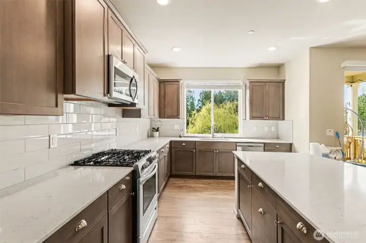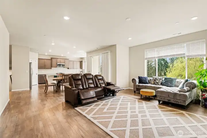 Experience the largest floorplan in community or even entire Marysville, ideally situated on a private corner lot in a quiet cul-de-sac. This home offers exceptional space, privacy, and flexibility throughout. The fully finished lower level features a huge bonus room, bedroom, and full bath—perfect for guests or multi-generational living. The main level showcases a light-filled great room design with abundant natural light from westerly exposure, complemented by hardwood laminate flooring, quartz countertops, stainless steel appliances, gas cooking, and ample prep space. A dedicated den/office and powder room complete the main floor. Upstairs, unwind in the spacious primary suite with a large walk-in closet and scenic views. Fresh paint and refreshed interiors make this home truly move-in ready. Enjoy outdoor living with a covered deck, lower patio, and fully fenced yard, all enhanced by ample privacy. The huge driveway accommodates up to 6 cars in addition to the 2-car garage. Conveniently located near shopping, dining, parks, Costco, Tulalip Casino, Seattle Premium Outlets, and I-5—this home offers the perfect blend of comfort, location, and lifestyle.