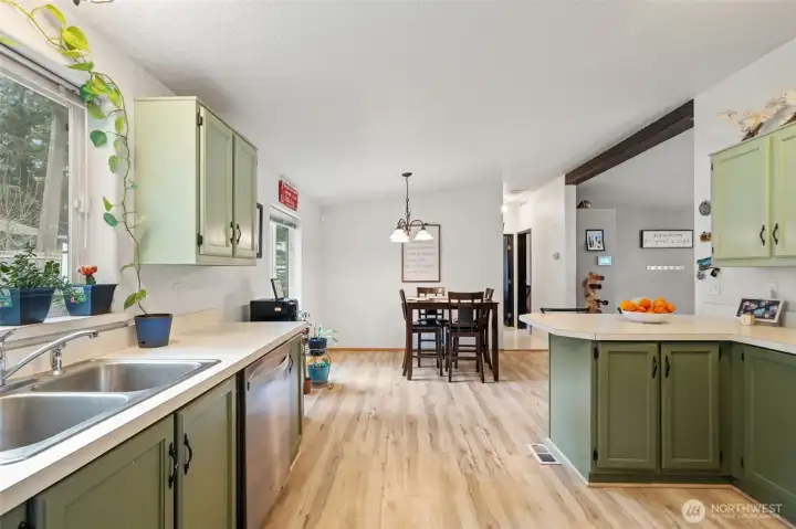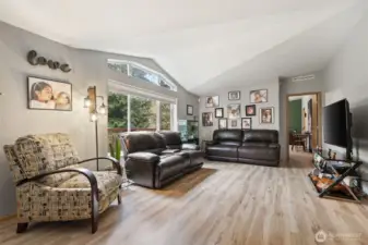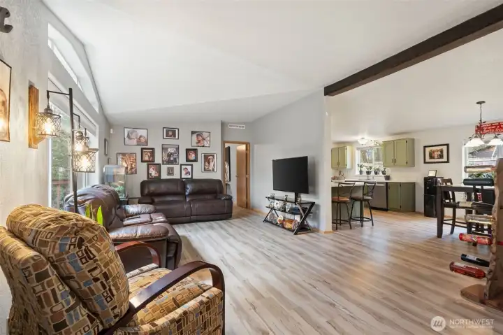 Spacious 3-bedroom, 2 full bath home on a level lot at the end of a cul-de-sac. The property has a private feel with tall trees, a fully fenced yard, and generous front and back outdoor space. A 12x24 deck and patio area provide room to gather, along with an 8x8 shed for additional storage. Inside, vaulted ceilings and large windows bring in natural light. The open layout connects the kitchen—featuring stainless steel appliances—to the dining and living areas. Bedrooms are well-sized with good closet space. The primary bedroom includes an en suite bath and a large closet, while the additional bedrooms and bath are situated on the opposite side of the home, making for a great split floor plan! A spacious utility/mud room offers plenty of shelving and access to the backyard. Driveway allows for ample parking, including space for RV or boat storage. Located close to shopping and with access to three community lake parks. HOA dues include water.