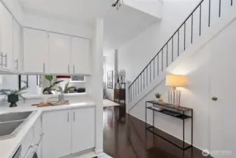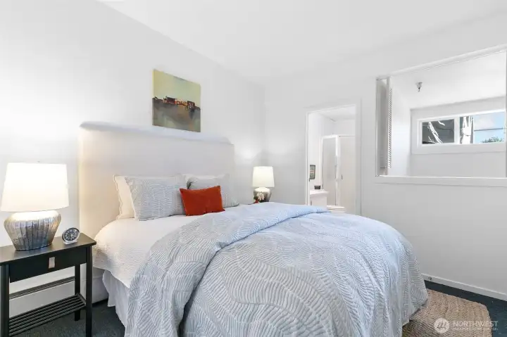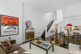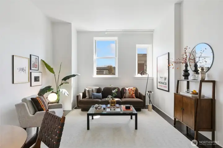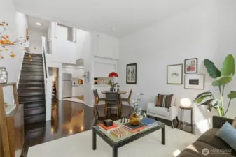 Welcome to Firehouse 25—Capitol Hill’s historic fire station reimagined as a boutique condominium. This rare gem blends Seattle’s rich past with modern design for a truly one-of-a-kind home. The entry level features a spacious foyer and primary bedroom with en suite bath. Descend the grand staircase to the lower level, where soaring ceilings, vast white walls, and abundant natural light create the perfect gallery-like setting for large-scale art. The main floor offers generous living, dining, and kitchen spaces, plus a powder room and versatile bonus room—ideal for a home office, nursery, craft, or workout space. Ample interior storage is an unexpected bonus. Nestled on a quiet, tree-lined street yet moments from award-winning restaurants, indie boutiques, and some of Seattle’s best coffee. With a 100 Walk Score, easy transit access, and flexible rental and pet policies, this iconic Capitol Hill residence delivers the best of urban living—perfect as a primary home or stylish pied-à-terre.