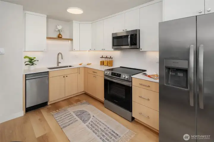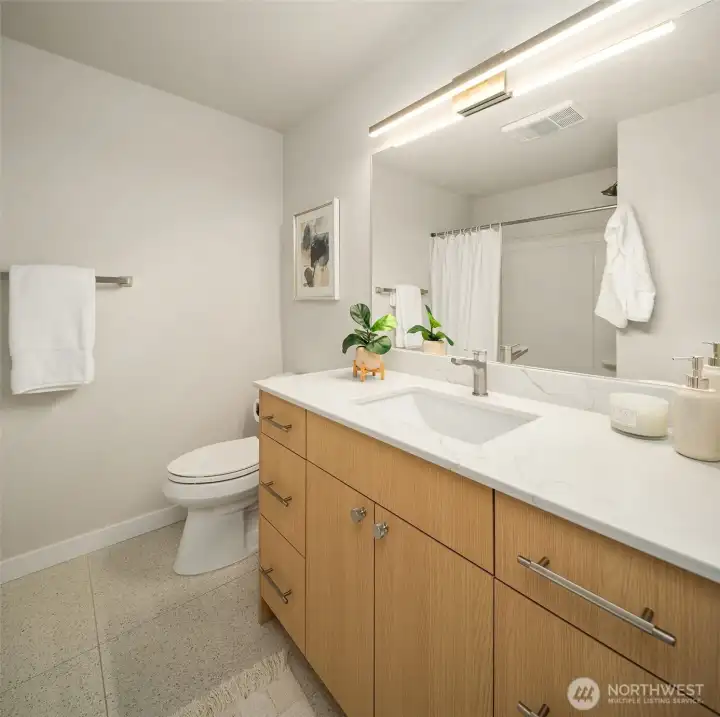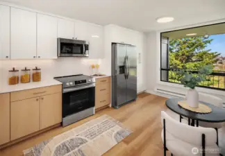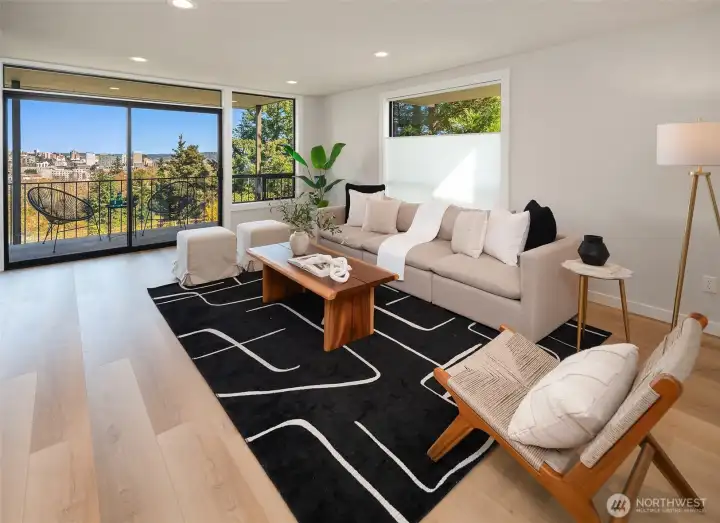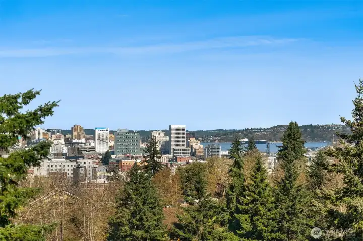 Perched above the city, this striking mid-century modern style fourplex captures sweeping views of downtown Tacoma, Commencement Bay, and the Tacoma Dome from every level. A true standout, the property features oversized units that live large and feel more like homes than apartments. The lower-level one-bedroom units span nearly 1,000 sqft each, complete with fully fenced yards and stunning views both inside and out in the large yards. Upstairs, the spacious two-bedroom units approach 1,100 sqft and showcase fully rebuilt decks with storage, plus incredible view from every north-facing window. Three of the four units have been beautifully renovated with fresh paint, updated lighting, new flooring, and stylish kitchens and baths. The newly completed fully renovated upper-right unit shines with a designer kitchen featuring under-cabinet lighting, a rare full-size pantry, new appliances, new flooring and carpet, all-new lighting, and a thoughtfully upgraded bath with heated tile floors. Ideal for an owner-occupant seeking a savvy “house hack” or an investor looking to maximize rents, this property delivers flexibility and upside. Ample covered parking, tons of street parking, and an on-site laundry room with nearly new machines add both convenience and additional income. A rare opportunity to own a view property with scale, style, and strong income potential - this is one you don’t want to miss.