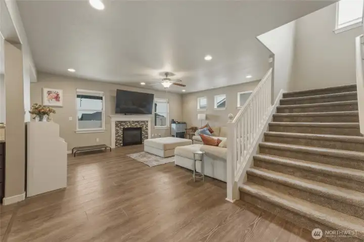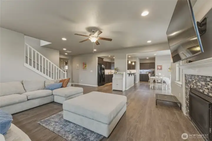 Tucked away in the quiet Clearwater Creek community, this inviting 4-bedroom, 2.5-bath home at 3070 Duval Loop offers comfort, functionality, and a prime location. Just blocks from Amon Creek Elementary and bordering the scenic Amon Creek Preserve, you’ll enjoy easy access to nature trails, Claybell Park, nearby shopping, and convenient highway connections. The main level showcases a bright great room concept filled with natural light, anchored by a cozy fireplace and seamlessly connected to a large kitchen—perfect for everyday living and entertaining. The kitchen features island seating, abundant cabinetry, and a walk-in pantry with bar area for added convenience and style. A main-level bedroom offers flexibility for guests or a home office. Upstairs, a versatile secondary family room provides additional living space—ideal for a media room, play area, or home office. The grand primary suite offers a spacious retreat with an ensuite featuring a dual vanity, separate soaking tub and shower, and a large walk-in closet. Two additional bedrooms and a full bathroom complete the upper level. Step outside to a fully fenced backyard designed for enjoyment, featuring underground sprinklers, a large covered patio with extended concrete space, and a BBQ gas stub—perfect for year-round outdoor entertaining. A dedicated dog run adds functionality for pet owners. With its desirable setting and flexible living spaces, this home offers the perfect blend of comfort and convenience.