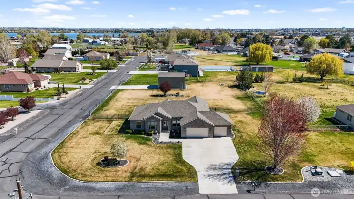 Enjoy the perfect blend of recreation, space, and comfort on this private 1-acre property ideally located near local golf courses and the lake. Whether your days are spent on the fairways, boating, or relaxing outdoors, this home offers a lifestyle that’s hard to beat. Inside, the thoughtfully designed floor plan features a tiled entry, formal dining, and a cozy living room with propane fireplace. The kitchen offers granite counters, rich wood cabinetry, gas range, stainless appliances, and multiple dining spaces ideal for entertaining. The spacious primary suite includes French doors, patio access, a large walk-in closet, and a well-appointed bath with dual vanities, sunken tub, and separate shower. A true standout is the large, powered, sheet rocked and insulated 864sf shop with RV parking and its own driveway—perfect for boats, hobbies, storage, or toys. Additional highlights include a finished 3-car garage, expansive irrigated yard, newer heat pump and water heater, central vacuum, and Hunter Douglas blinds throughout. A rare opportunity for lake and golf enthusiasts seeking room to live, work, and play.