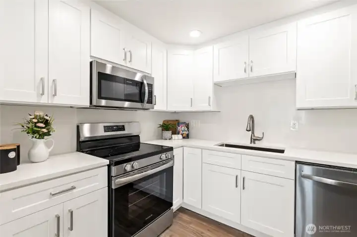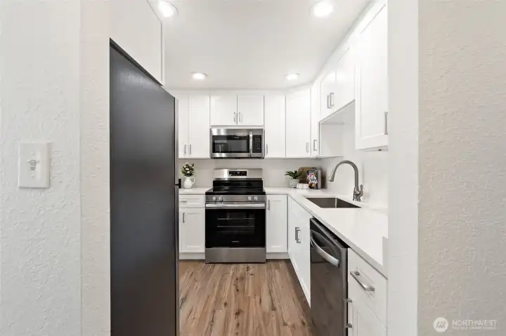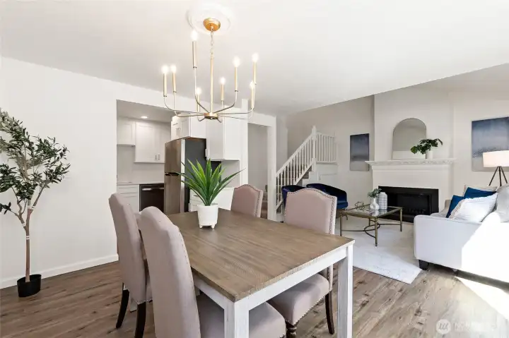 Fully renovated 3 bed Townhome-style condominium with private fenced yard, patio, and cozy fireplace—move-in ready and designed for easy living. End-unit feel on a quiet street with reserved parking, flexible layout, and quick access to I-5, downtown Marysville, and major employers. This beautifully updated 3 bed / 1.75-bath condo with townhouse-style layout offers comfort, style, and turnkey living. Enjoy a brand-new kitchen with new appliances, upgraded lighting, new windows, window coverings, fresh interior paint, and new flooring throughout. The bright living and dining areas open to a fully fenced private backyard with a spacious patio—perfect for entertaining, relaxing, or summer BBQs—plus a cozy fireplace for colder days. The versatile lower-level bedroom with a 3/4 bath provides ideal space for guests, multi-generational living, or a private home office. In-unit washer and dryer add everyday convenience, along with generous under-stair storage with walk-in access. Includes a reserved parking space plus ample street parking, ideally located on a quiet end street. Conveniently located near downtown Marysville with easy access to I-5, shopping, dining, and major employment centers, Naval Station Everett, and the Arlington-Smokey Point corridor. A great opportunity for buyers seeking a turnkey home with flexible living in a commuter-friendly location. Schedule your visit today! Condo is FHA and VA eligible.