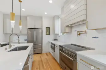 Discover this bright, stylish, and spacious modern townhome, offering more space than a luxury condo without the burden of HOA dues. Perfectly situated in the heart of Lower Queen Anne, the home is set back from the main road, ensuring a peaceful living environment. The interior boasts boutique finishes throughout. Culinary enthusiasts will appreciate the generous kitchen, a true chef’s delight featuring quartz countertops and premium Bertazzoni appliances. Tall ceilings and expansive windows on every floor create wonderfully airy, light-filled spaces. Enjoy stunning city views from the private roof deck. A rare mezzanine level provides versatile bonus space, ideal for a home office, workout area, media room, or game space. Parking is convenient with a private garage plus an additional reserved spot in front for a second car. This prime location is just blocks from neighborhood favorites, including Met Market, Citizen, and Laredo’s Grill.