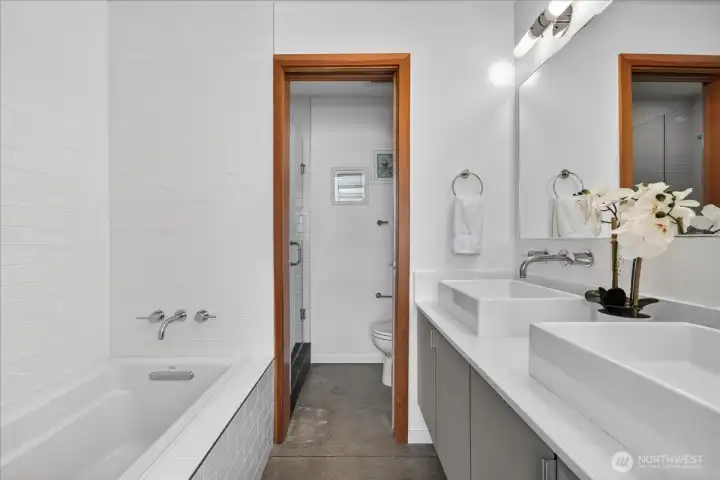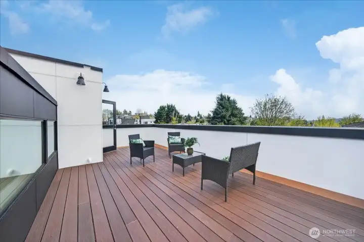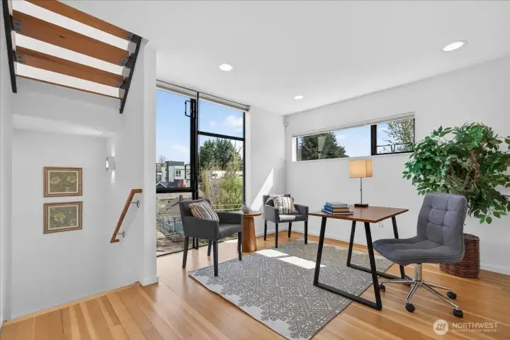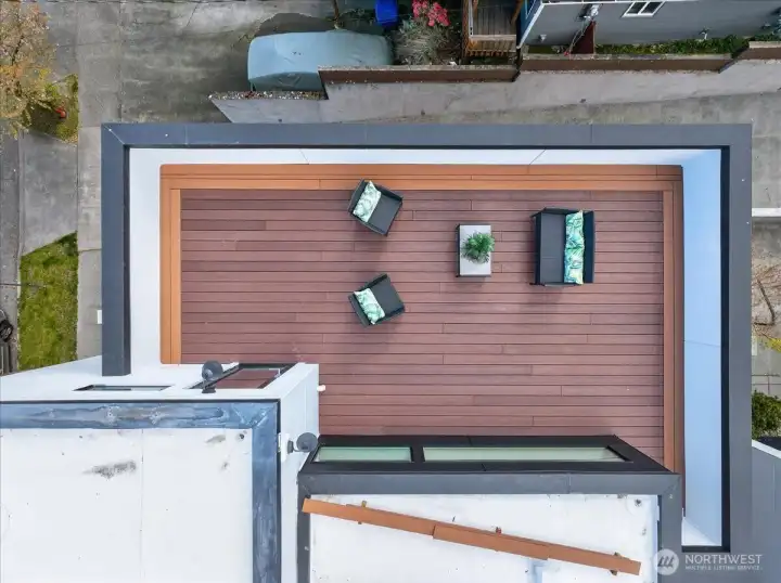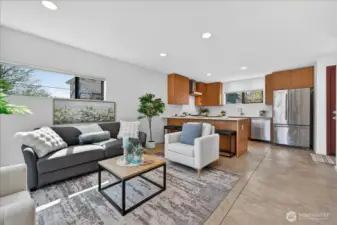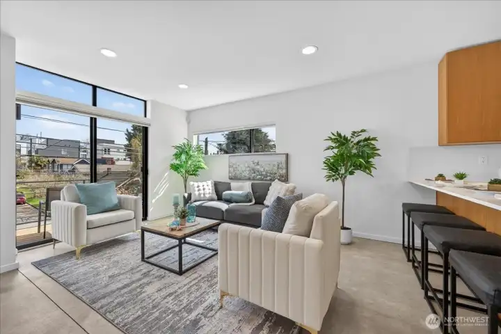 Discover urban sophistication in Judkins with this striking 2 bedroom, 2 bathroom contemporary home, spanning 1,465 square feet. The property showcases sleek radiant concrete floors and exquisite floating stairs, adding to its modern appeal. Large windows throughout flood the space with abundant natural light. Embrace outdoor living with the expansive rooftop deck and additional deck accessible from the living room—perfect for enjoying sunrises or territorial views. The spacious primary bedroom, complete with an en suite bath and a generous closet, offers a private retreat. Benefit from a dedicated parking spot and the property's close proximity to the Judkins light rail station, ensuring quick commutes. Situated near PCC and celebrated restaurants in Madison Valley and Madrona. The home also provides easy access to Judkins Playground for outdoor fun. The location and unique features make this home stand out! Close to I5 and 90!