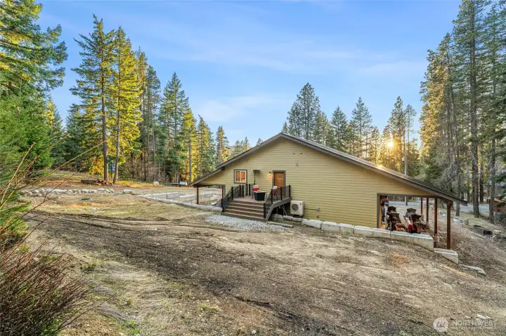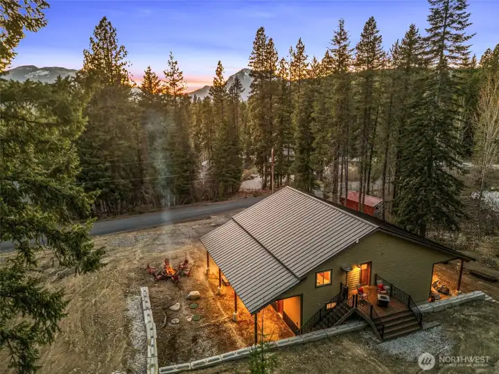 Your Year-Round Alpine Basecamp awaits in the coveted Chiwawa River Pines community. Perfect for outdoor enthusiasts, this community offers a private riverfront beach & direct access to public trails for snowmobiling, motorcycling, hiking, & biking—ride straight from your doorstep, no trailer required. Designed for comfort & functionality, the layout is ideal for hosting guests. The main level features a generous living room, bedroom with king bed, full bath w/ laundry, & a well-appointed kitchen w/ granite countertops, custom maple cabinets & stainless appliances, all open to the dining area. Radiant heated concrete floors on the main level provide warmth & low-maintenance durability well-suited to mountain living. Upstairs includes 2 large bedrooms w/ king beds, a full bath, bonus bunkroom, & a versatile flex space suited for a game room or additional sleeping quarters. An upper-level entry leads to a private back deck, perfect for relaxing w/ your morning coffee. Bring all your gear with a 765 sq ft shop featuring a 14' tall door for RV parking or recreational storage, also equipped w/ radiant heated concrete floors. 2 oversized carports provide covered parking for up to 4 vehicles. Imagine slow mornings on the deck, sunny afternoons on the river, & evenings gathered around the firepit under clear mountain skies. Explore, unwind, & recharge w/ four-season recreation just minutes away, including Leavenworth, Lake Wenatchee, Kahler Mountain Club & Stevens Pass Ski Resort.