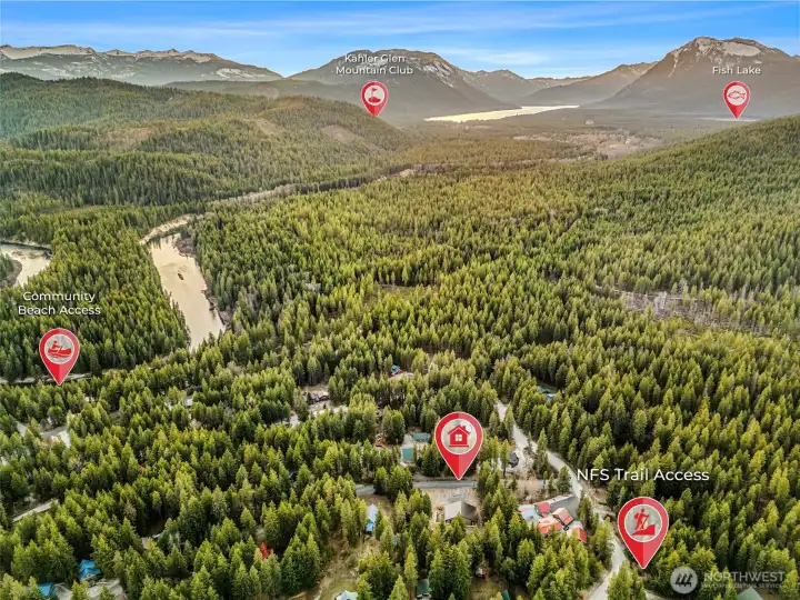 Private Chiwawa River Pines community beach shown to the right. This is the perfect spot to take out after floating the river from Wenatchee State Park.