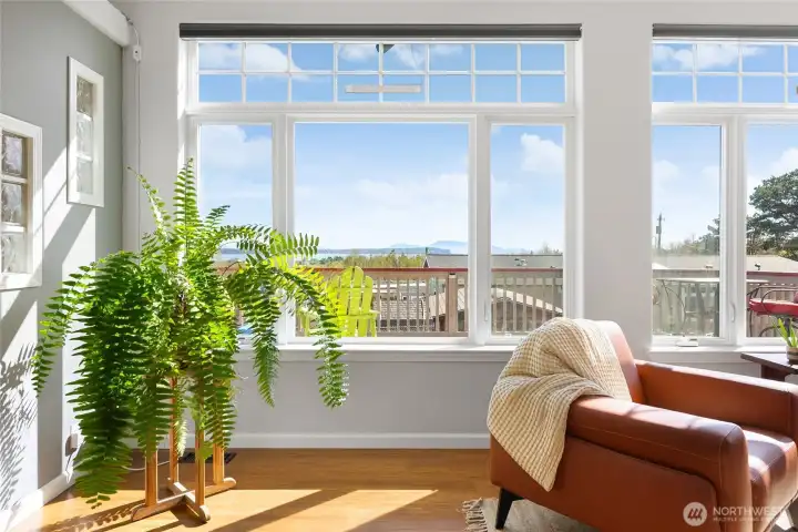 This Bright and sunny home with stunning panoramic views of Birch Bay, the islands and Mount Baker awaits you at this beautiful Birch Bay home, located two minutes from the beach. This single level, 3 bedroom and 2 bath home with 2024 updates including new Bosch appliances, a new roof, new exterior paint, new water heater, new central heating and air conditioning, which you'll appreciate during our summer months. And talk about summer, this home has a huge 720 sq ft deck composed of Trex decking materials for low maintenance, with a shade awning, perfect for entertaining during our wonderful warm evenings. This home has a warm and functional layout that includes a sitting area just inside the entry, perfect for quiet reading, a separated main bedroom with a five-piece, on-suite bath for privacy. Two additional bedrooms share the second full bathroom at the other end of the home. The comfortable living room with a new gas fireplace, opens to a large chef's kitchen with plenty of counter space and a large dining area that connects to the outside. The house also features a fully fenced back yard and plenty of storage with two outdoor sheds that offer storage or the perfect place for early-season gardening and out front you'll find a car port for one car. Come see this wonderful home!