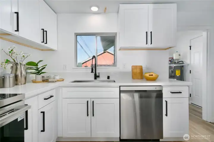 Turn KEY in Tacoma! This perfect little home in Tacoma's McKinley Hill will delight you with all its updates! Situated on a corner lot, this home features NEW paint in and out + LVP flooring! Open and bright living space with dining nook. Modern updates w/historic charm! Fully updated kitchen and bath! NEW Quartz countertops, shaker cabinets, stainless steel appliances and breakfast bar! Full bedroom at the back of the house for added privacy! NEW ROOF and Electrical panel! Enjoy the fully fenced back yard, with new landscaping and storage shed! This home is ready for move - in today!!