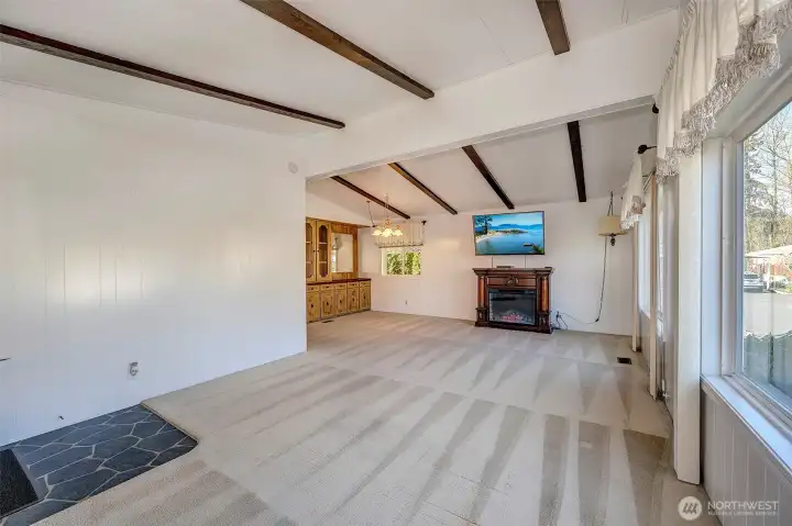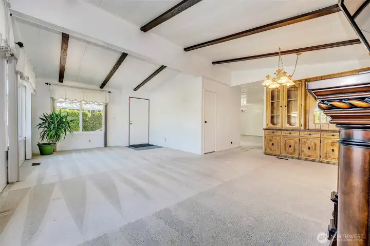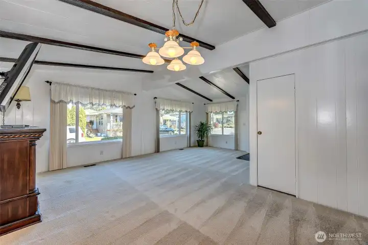 Silver Lake area. Great neighborhood. Nice manufactured home in popular 55+ Lago De Plata Park. Home includes grand entry w/cathedral ceilings and exposed beams, updated windows and roof, electric fireplace and built in cabinetry, painted millwork throughout, newer lvp flooring, oversized kitchen with skylight and sitting bar, good sized pantry, updated fixtures, large primary bedroom w/huge walk-in shower, walk in closet as well. 2nd bedroom good sized w/attached full bathroom, large garden area faces south with lots of sun, detached outbuilding/shed, covered sitting deck. Rare RV/Boat parking available. All appliances and washer/dryer included. Professionally cleaned and move in ready! Community offers frequent activities, outdoor pool, transportation. Park is conveniently located to stores, restaurants, parks, bus line, pharmacy, Everett Mall and more.
