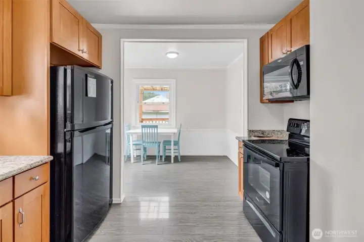 Get a great deal now! Charming updated rambler with finished basement! The main level features stylish laminate plank flooring, a modern kitchen with slab granite countertops, soft-close cabinetry, and a dedicated dining area. Two bedrooms and a full guest bath complete the upper floor. Custom built-ins add functionality off the kitchen and basement landing. The lower level offers flexible living with a spacious bonus room, den/office, additional bedroom, half bath, and laundry area. Step outside to a mostly fenced backyard with a covered deck, patio, and outbuilding—perfect for entertaining or relaxing. Possible alley access for parking via the side gate. Conveniently located just minutes from downtown Auburn, shopping, dining, and quick freeway access to HWY.