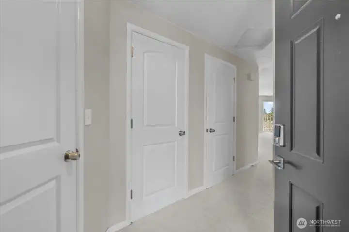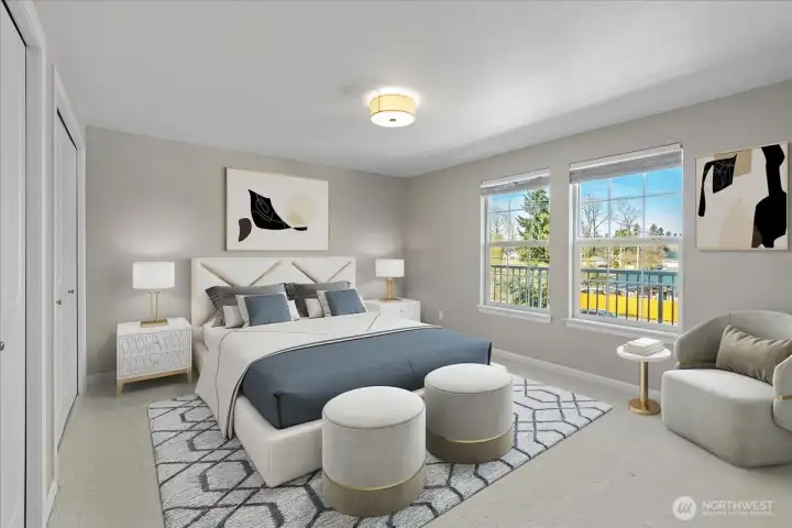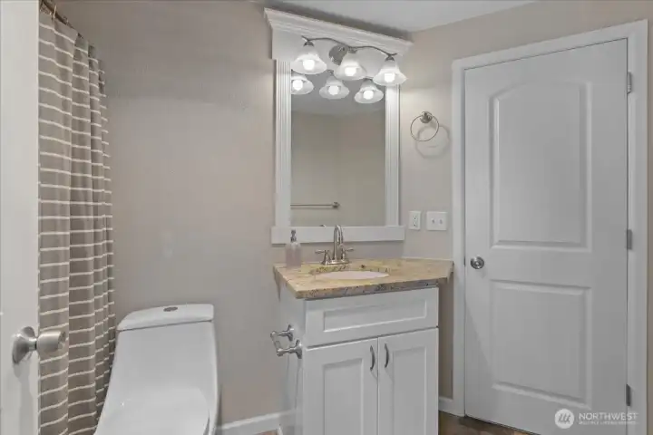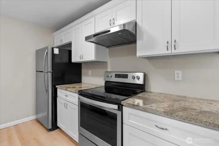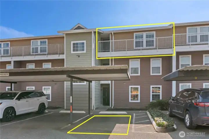 2/1 INTEREST RATE BUY-DOWN OR CLOSING COST CREDIT W/PREFERRED LENDER. Step into this stunning top-floor beautifully renovated condo in the gated Holly 100 community! Enjoy a light-filled, open layout with 2 spacious bedrooms, each connected to its own full bath. The refreshed kitchen showcases crisp white cabinetry, granite countertops, stainless steel appliances, and a dedicated stove vent hood. Unwind on your private patio, ideal for outdoor seating and a convenient extra storage closet. In-unit laundry room with washer and dryer included. Lots of interior storage in this condo! Brand new roof installed in 2025. Enjoy the peace of mind of a gated entrance, covered parking, plenty of guest parking, and a beautifully maintained community green space. HOA dues cover water, sewer, garbage, and exterior maintenance -- no special assessments. Perfectly positioned just minutes from Boeing, Paine Field, I-5, local shopping, and nearby schools, this one truly has it all. A move-in-ready gem you won't want to pass up!