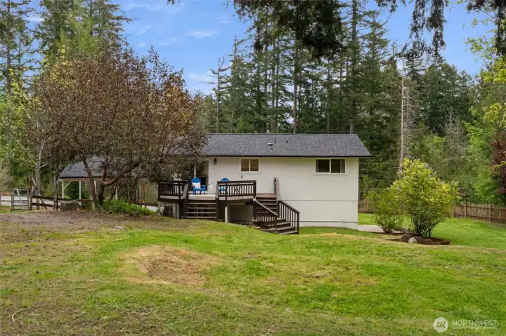 Set on nearly 2 acres in the Grapeview corridor, this thoughtfully updated split-level home offers a natural balance of space, comfort, and flexibility for everyday living. The main level feels open and connected, anchored by a kitchen with white shaker cabinetry, quartz countertops, tile backsplash, and stainless steel appliances, flowing into a bright living area where daily life unfolds with ease. The main bath has been updated with clean, modern finishes, adding a fresh and comfortable feel. Downstairs, a second living area with exterior access, two additional bedrooms, and a full bath provides the kind of versatility that adapts to your needs—whether for guests, work-from-home space, or simply room to spread out. Recent improvements, including fresh interior paint, attic insulation, a whole-house water filtration system, and a new well pressure tank, bring added comfort and peace of mind. Outside, nearly two acres offer room to breathe, garden, or enjoy the quiet surroundings. A generous back deck creates an easy space for gathering, while the detached garage/shop and RV parking add flexibility for hobbies, storage, or projects. Located near the Port of Grapeview and Fair Harbor Marina, with convenient access to outdoor recreation and the natural beauty of the surrounding area. You're going to love living here!