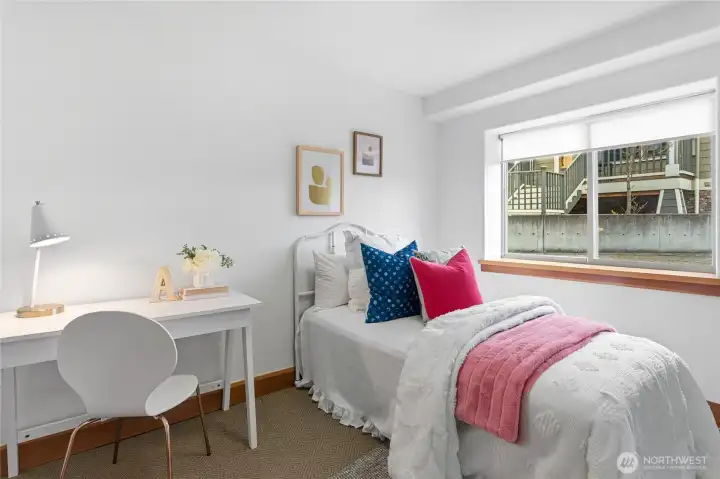 Gated Craftsman townhome in a private 8-home enclave w/ cobblestone drive. This rare, extra-wide 1775 sqft end-unit floor plan features windows on 3 sides for optimal natural light & airflow. 3 assigned parking spaces: 1-car detached garage + 2 tandem next to home. Open layout with luxury finishes: real cherry hardwoods, wood-wrapped windows, granite counters, custom cabinets & updated stainless appliances w/ gas stove. Lower-level w/ exterior access offers great versatility (gym, guest, entertainment space or home office)! Located within the geo-zone of the highly coveted John Stanford International School! Association dues cover: Property insurance (exterior and walls) + earthquake insurance, garbage, water and sewer, landscape (except backyard), maintenance for roof, window, exterior wall and common area. Mountain Rainier view from upper floors! Freshly painted, pre-inspected & move-in ready.