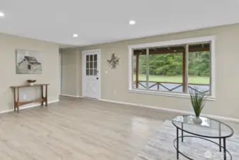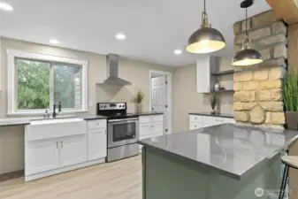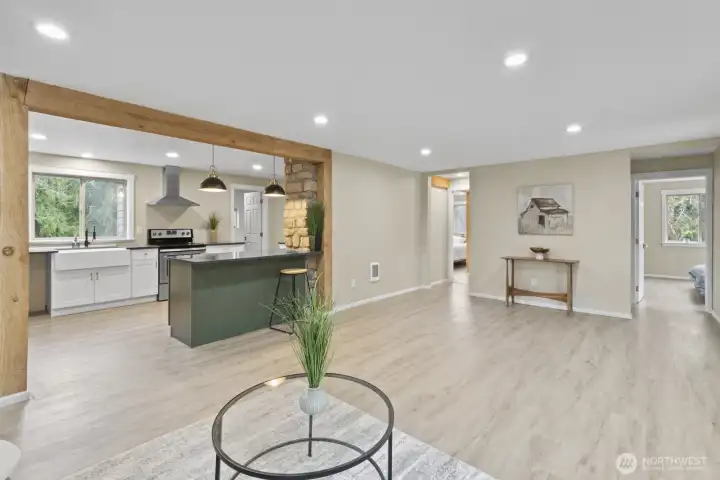Beautifully updated craftsman house on nearly 10 acres with detached garage, new roof, RV hook up, and original barn. Upon entry, you're welcomed into an open living space with a stunning exposed beam that appears throughout the home. The kitchen boasts black quartz countertops with white veining, stainless steel appliances, and the star of the show, a quartz farmhouse sink. Off the kitchen is a large utility room with washer and dryer plugs and exterior access to your extended deck. In the primary bedroom, you're greeted by the lovely exposed beam, a large walk-in closet, and a soaking tub/shower with a view of the property. The home features two decks, landscaping, and has multiple fruit trees, and is completely fenced!