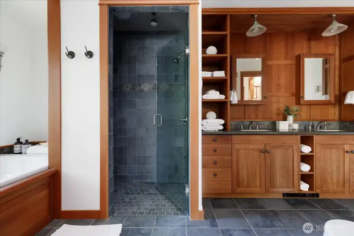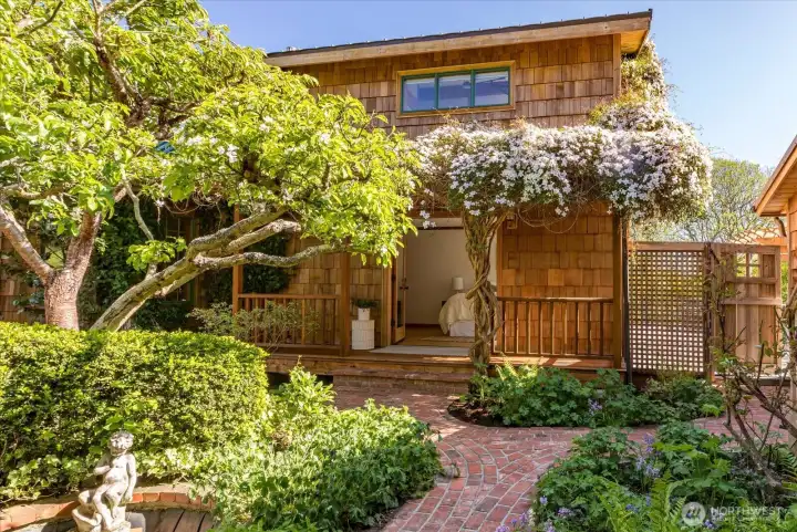 Tucked into a beautifully landscaped setting, this custom home offers a private retreat designed for both everyday living and memorable gatherings. Rich in character and thoughtfully crafted, the home blends warmth and style with inviting living spaces that feel both comfortable and refined. The main residence features a well-designed layout with a loft space perfect for a home office, creative studio, or quiet reading area. The primary suite enjoys a peaceful outlook over the courtyard and includes a spa-inspired bath for a relaxing escape at the end of the day. Adding to the appeal is a detached guest cottage, ideal for visitors, extended stays, or flexible use. Outdoors, the property truly shines with established gardens, a generous patio, fire pit, pizza oven, and ample space for dining and entertaining. A special offering that combines charm, function, and a setting that feels both private and inviting.