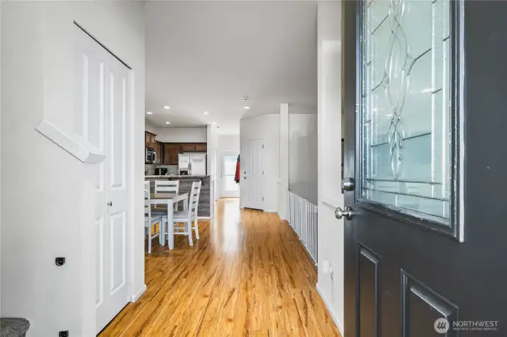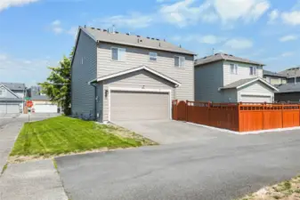 Welcome to Wyndham Ranch, a gated community with parks, trails, and more. Situated on a premium corner lot close to JBLM, this home features an open main floor, kitchen with stainless steel appliances, tile backsplash, and breakfast bar seating. The dining area flows into a large bright living room plus a convenient half bath. Upstairs includes a primary suite with walk-in closet and en suite bath, three additional bedrooms, a full bath, nice sized laundry room. Enjoy the covered front porch, fully fenced backyard, two-car garage, and extra parking. Community perks include basketball courts, garden beds, two play areas, walking trails, and a covered gazebo.