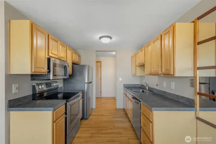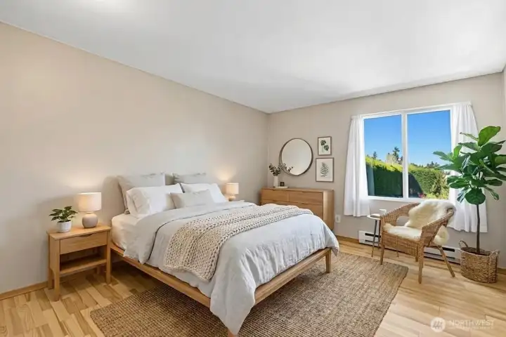 Top-floor corner unit in the heart of Sand Point with hardwoods, abundant natural light, and a spacious layout. This updated 1-bed, 1-bath home features expansive windows, Cascade views, private balcony and secure garage parking. Major building upgrades include siding, windows, doors, electical panel and landscaping. Steps to the Burke-Gilman Trail and Magnuson Park with walking paths, sports fields, and an off-leash dog area. Minutes to UW, UW Medical Center, Children’s Hospital, University Village, and light rail for easy commuting. Pet-friendly with no rental cap—ideal for homeowners or investors. Enjoy park-like manicured grounds and amenities including an outdoor pool, remodeled cabana, fitness room, sauna, bike storage, package locker, guest parking and additional storage. On-site management. The rare perfect blend of nature and in-city convenience.