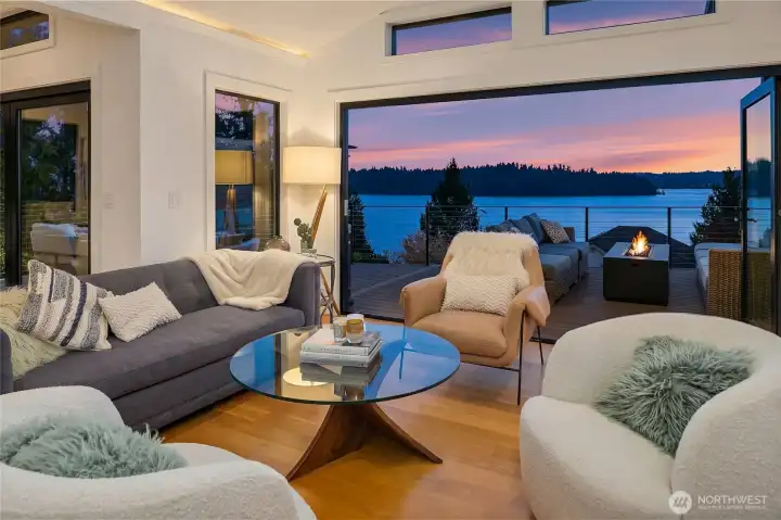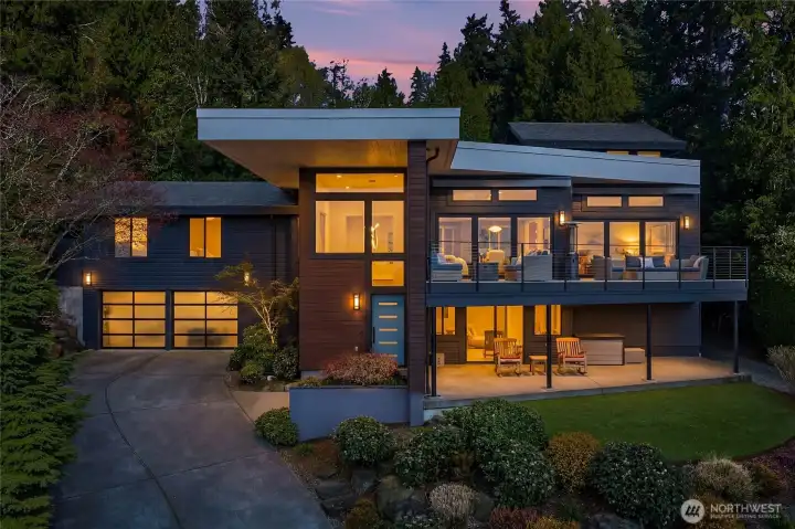 Epic, breathtaking sunsets on Mercer Island’s famed Gold Coast! Modern, innovative, significant. This showcase home was completely reimagined in 2020. Thoughtfully designed to take advantage of the stellar views featuring the Seattle Skyline, Seward Park, and the Olympic Mountains. Meticulously curated with the finest details from elegant lighting to high end appliances and designer touches. Opening the walls of windows lets the outside in and sets the tone for the open, airy floorplan. Main level primary suite with dreamy bath, home office, great room, showpiece kitchen, family and dining rooms. Lower level with 3 spacious bedrooms and a rec room. Spiral staircase from the main leads to a sunny bonus room. Beautifully landscaped with level lawns, sports court, outdoor living space with heaters and fountain. Forest Avenue is the location to beat, just minutes to downtown MI, schools, parks and I-90.