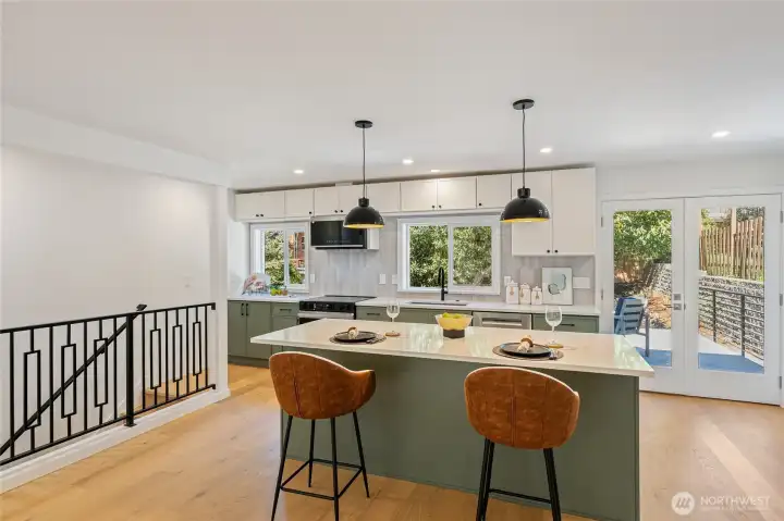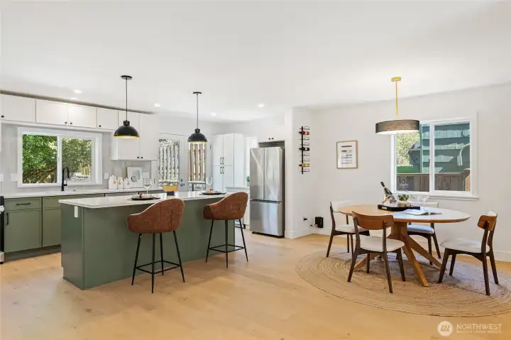 Fully remodeled in 2026, this stunning Victory Heights home blends modern design with thoughtful functionality. Set on a 7,763 SF lot, this 4-bedroom, 2-bath residence offers 2,110 SF of light-filled living space plus 250 SF of expansive decks—perfect for seamless indoor-outdoor entertaining. The open-concept floor plan creates a natural flow between living, dining, and kitchen areas, ideal for today’s lifestyle. The chef’s kitchen is a true centerpiece, featuring quartz slab countertops, ENERGY STAR® Samsung smart appliances, wine cooler, Silgranite sink, and sleek Kraus faucet. Two wood-burning fireplaces add warmth and character, while engineered hardwood flooring, designer accent lighting, slim shaker cabinetry, and matte black fixtures elevate the home’s modern aesthetic. Luxury tile finishes with stone and mosaic accents and built-in storage throughout add both style and function. Enjoy a private, fully fenced yard with natural landscaping, offering space to relax, garden, or entertain. Energy-efficient systems, EV charging outlet, smart lock, Ring doorbell, and water-saving fixtures provide comfort, convenience, and sustainability. Located near parks, trails, and neighborhood amenities, this move-in ready Seattle home offers the perfect balance of modern upgrades, outdoor living, and everyday convenience.