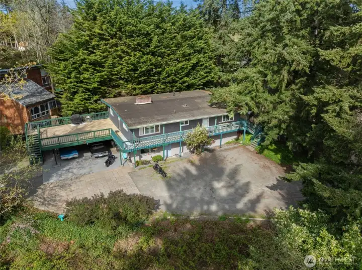 Incredible opportunity to own a truly unique home in highly sought-after Des Moines. It could be used as a Triplex, duplex, or perfect accommodations already for multi-generational living. Current setup: 4 tenants upstairs (including 1 in the "living room"). 2 tenants downstairs in each bedroom enjoy a nicely updated 3/4 bath, leading up to the shared kitchen/dining area. And 1 tenant occupies the ADU/MIL large studio apartment downstairs, which features a beautifully updated kitchen w/quartz counters and its own entrance. That's 2 kitchens, 2 water heaters, 3 washer/dryers and 7 rental incomes! All tenants are currently on month-to-month leases. Main/upper level of the home has a large, open kitchen and dining area that leads out to the oversized entertainment deck. The living room and 3 bedrooms feature hardwood floors. Primary bedroom has its own 3/4 bath. Port package windows and 2 wood burning fireplaces. Plenty of parking for everyone including a large carport w/plenty of shop space. Centrally located less than 1 mile to Highline College, city parks, local shopping, schools, I-5 access, new Link light rail station, bus line & the Marina and all that Downtown Des Moines has to offer. This unique home offers so much and needs just a little TLC to shine bright once again. Mortgage savings may be available for buyers of this listing.