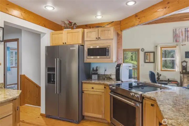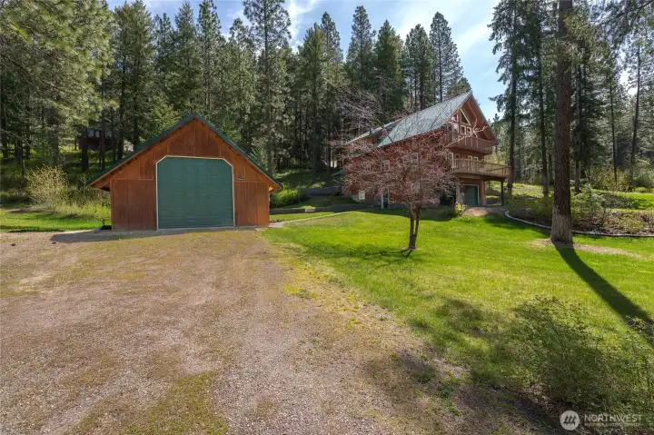 Perfectly positioned for immediate use as a premier vacation rental (buyer to verify) or a turn-key second home. Home is located on 1.47 forested acres with mature landscaping and a newly constructed retaining wall. Public land is approximately a half mile up the road, with lots of turkey and deer all around. The home is 15 minutes from Leavenworth and 25 minutes from Wenatchee. The cabin includes a 2023 heat pump, a wood-burning stove, a 40x24 detached RV shop with a 16-foot door, a private well, and two front facing balconies for each above grade level of the home. The cabin's loft-style layout features main-level living with real hardwood floors throughout the kitchen, custom wood cabinetry, a large guest bedroom with dual closets, a full guest bath, and a spacious walk-in laundry/mud room with a walkout to a private back deck. Off the master suite on the loft level, you can find a custom built window wall that allows for privacy when closed, or natural sunlight and moonlight. The below grade level includes a two-car garage equipped with built-in storage, a central vacuum, and a wood-burning stove, a fully insulated and heated bonus room and a root cellar/store room for extra storage. Located just a half-mile off Blewett Pass for an easy commute from the Seattle area or anyone traveling from I-90.