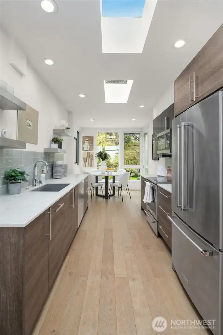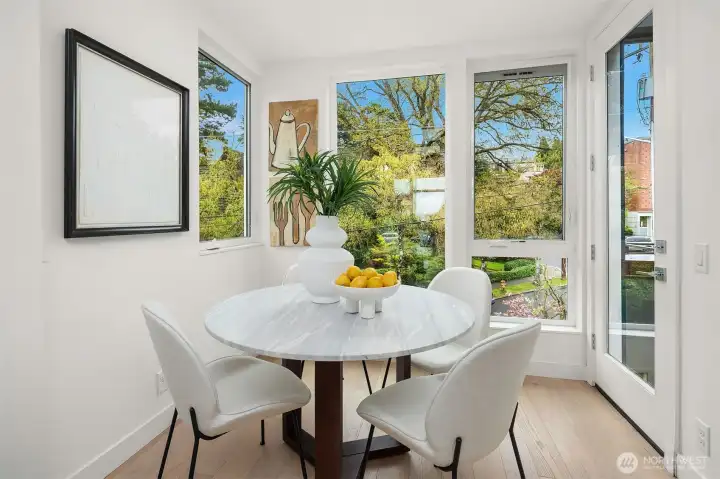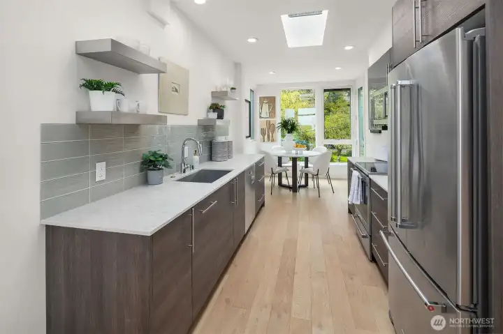 Nestled at the edge of the Harvard-Belmont Landmark District, this home offers contemporary living in a vibrant, historical residential neighborhood. Superbly situated, it offers expansive views and easy access to Capitol Hill, South Lake Union, and downtown Seattle. Thoughtfully arranged across four levels, the home offers three private bedroom suites—each occupying its own floor—creating a sense of separation and retreat. A flexible lower-level space could be used as a home office, media lounge, or studio. At the top, the primary living level is a study in light and volume. Expansive windows and skylights illuminate the open kitchen, dining, and living spaces. A rooftop deck completes the offering, designed for both intimate evenings and elevated entertaining. From here—and from the living room below—take in west-facing vistas spanning the city skyline, Lake Union, Elliott Bay, and the Olympic Mountains. A secure parking space in the common garage offers everyday ease, while a comprehensive exterior and siding renovation (2023–2024) provides the confidence of a meticulously renewed building envelope—arguably surpassing new construction. With a Walk Score of 90 (“Walker’s Paradise”), Transit Score of 83, and Bike Score of 78, this address places the very best of Seattle within immediate reach. Welcome to 729 Belmont Ave E.