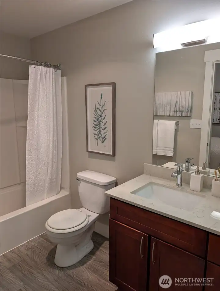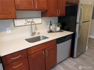 Residence 204 at Slater Kirkland Condominiums lives like a true one-bedroom home but with a studio price point. Large windows in the generous living/dining area allow plenty of light into this home. The newly renovated kitchen features light and bright finishes - white quartz countertops, subway tile backsplash, and white shaker style cabinets. All new flooring is a luxury plank in “washed oak” with light gray walls throughout. The bedroom area is tucked towards the back of the home for peaceful rest, with large closets and storage opposite the entry way. Washer/dryer and window treatments are included. Slater Kirkland is a newly renovated condominium community with 52 homes for sale, conveniently located just off the 405. All of Kirkland and the Eastside’s top destinations are less about a 10 minute drive away: • Less than 10 min drive to Google / Kirkland Urban • About 10-15 min drive to Bellevue (Microsoft, Amazon, OpenAI, etc.) • Less than 10 mins to Lake Washington • Less than 10 mins to Downtown Kirkland’s many restaurants and coffee shops • World-renowned Woodinville wineries and hiking trails within a 15-minute drive All homes were upgraded in 2019 with modern fresh finishes. Slater Kirkland offers single-level condos in an elevator building, plus a fitness center, club room and resident-only courtyard.