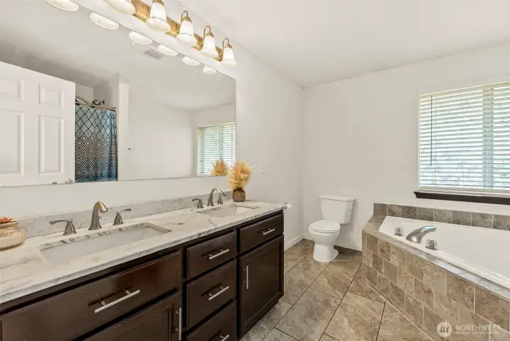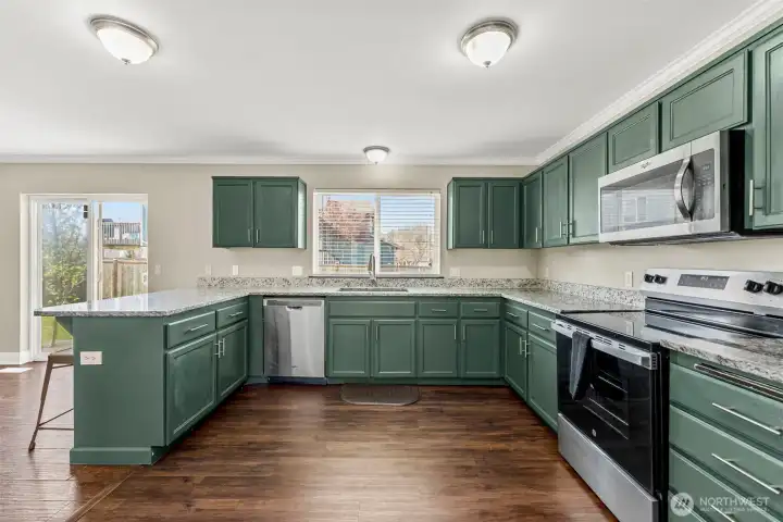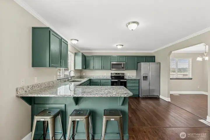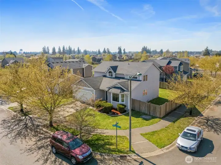 Beautifully maintained 2,000+ Sqft home on a large corner lot in desirable Yelm neighborhood! Vaulted ceilings in the entry, formal living & dining rooms create a bright, open feel. The spacious kitchen features granite counters, updated hardware, stainless steel appliances & flows seamlessly into the family room w/gas fireplace, perfect for entertaining. Primary suite includes walk-in closet, dual sinks & relaxing soaking tub. Enjoy year-round comfort w/ forced air heating & A/C. Large fully fenced backyard offers privacy & space for pets, play, or gardening. Great location near schools, parks & shopping—ready for you to call home!