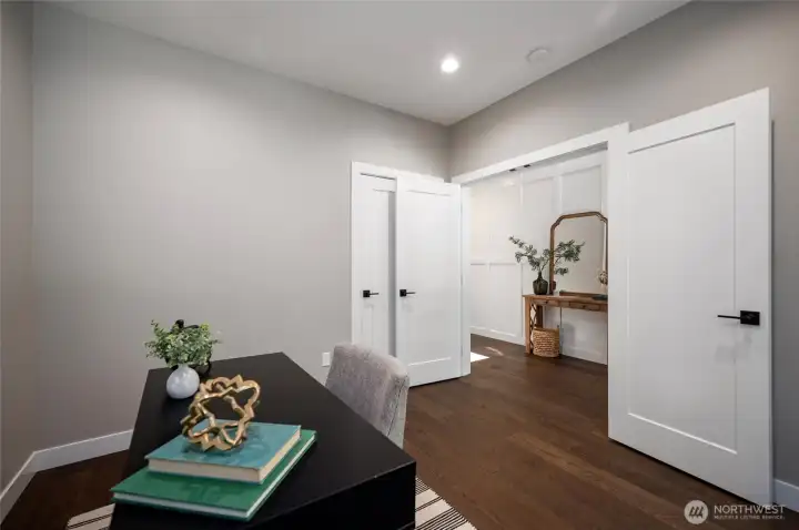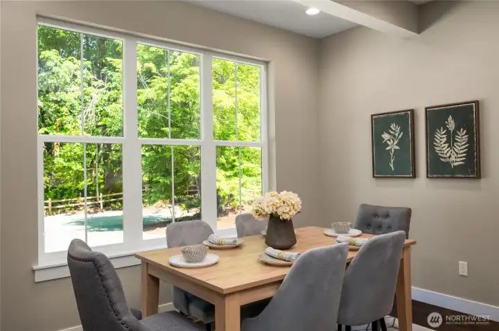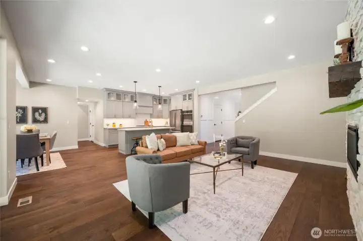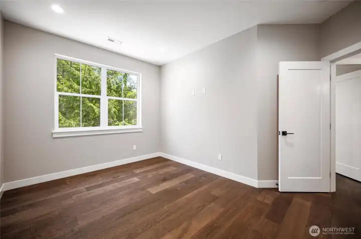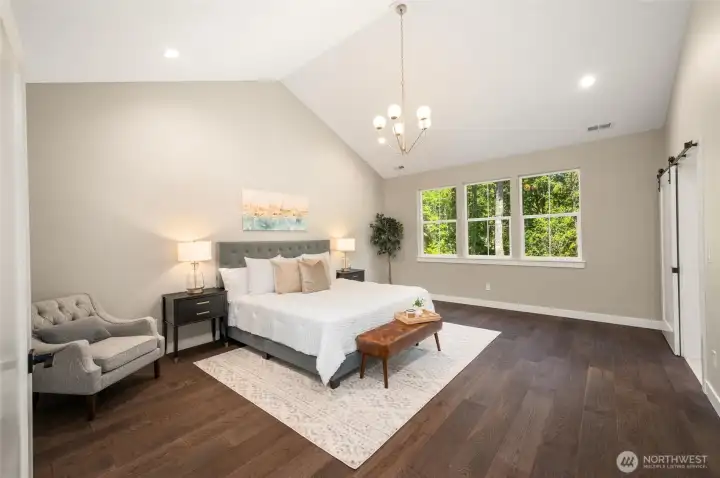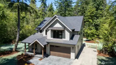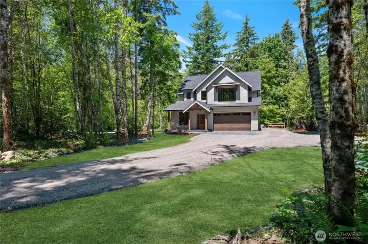 A luxury, private county home in a new development located on a dead end street equidistant between Seattle and Vancouver! This 2,600+ square foot home features high end finishes set in a private cedar glade on 1 acre with native trees, mountain vistas and great light. You'll love the vaulted ceilings, and spa-quality bathrooms complete with waterfall showers and linear drains, gourmet kitchen with all SS appliances, expansive great room, huge primary suite, plus 3 bedrooms, and an office/den. This modern farmhouse style home has wide plank oak floors, a stone fireplace, a covered outdoor patio just off the living room, and generous living spaces throughout. With quick access to I5 and Mt. bike trails, this custom home deserves a look.