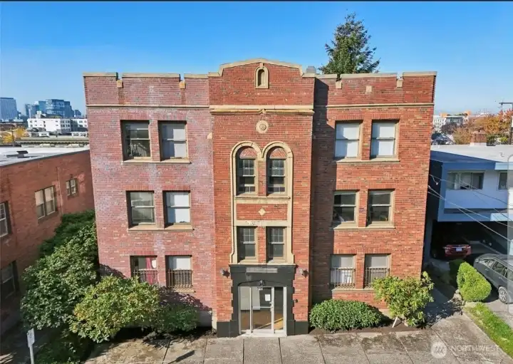 Turnkey North Capitol Hill Investment. The Rhodes Apartment Building is a rare opportunity to own a timeless, cash-flowing asset in the heart of Vibrant Capitol Hill. This well-maintained property features 6 well-appointed spacious corner units offering views of the Space Needle, Downtown Seattle & Olympic Mountains with beautiful original brickwork that adds to the building’s classic charm & curb appeal. 6 large 1-bed, 1-bath + den/NC bedroom, generous living/dining areas, full kitchens & hardwood floors throughout. Secure entry with lobby. Common laundry area. Driveway to the building’s 12 car parking lot for tenants. The daylight basement may also offer the opportunity to add 2 additional 1-bedroom units for additional income. Situated on a 5,994 sqft lot with Mid-Rise zoning (MR-M1), this property also presents exciting future development potential. This prime location is minutes to Downtown Seattle, Tech Companies, Amazon, Microsoft, Google, Apple, Meta, Adobe, Oracle & more. Residents enjoy easy access to restaurants, shopping, Whole Foods, Costco, Pike Place Market, hospitals, parks, major bus lines, I-5, I-90, and Hwy 99. Walk Score 98 & 3 blocks to Light Rail. A character-rich asset with upside in one of Seattle’s strongest rental markets. Possible Seller Financing.