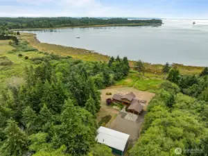 Welcome to your Pacific Northwest dream cedar home that is a birdwatchers dream come true. Escape to North Bay—where rustic charm meets refined comfort. This handcrafted home is nestled on nearly 7 acres of waterfront paradise with 200 feet of shoreline & unforgettable views of “The Rock.” Inside you'll find, the warmth of tongue-and-groove cedar ceiling and towering river rock fireplace to unwind. Open-concept living space includes kitchen with pecan cabinetry, island and stunning views. Two bedrooms on the main level, a versatile loft & spa-like bath complete the home. Huge 30x48 shop for RV, boat, at home business & room for all the toys. Shop has finished office with ¾ bath & 2nd kitchen! This is the ultimate PNW lifestyle home. Use Kessler Lane vs Anderson for mapping! Just down the road you will find Lytle Seafoods for all your seafood shopping must have's or short drive to the beach to go play, enjoy razor clam digging, fishing and all the area has to offer. Town of Aberdeen is only 11 miles away for any shopping or head on over to Ocean Shores that is 12 miles away.