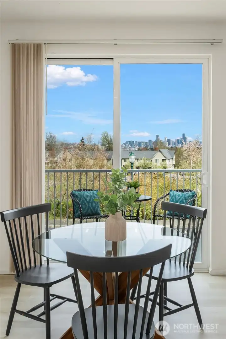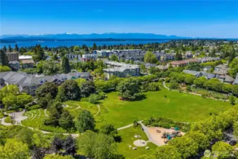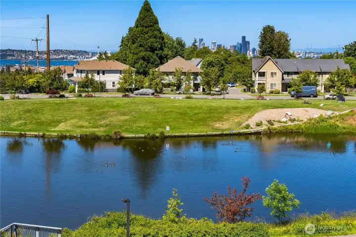Welcome to High Point—an award-winning, eco-conscious community where thoughtful design meets everyday tranquility. This versatile 2-bedroom townhome offers exceptional privacy along with sweeping Seattle city views from every room, creating a truly elevated living experience. Step into a light-filled main level featuring an open-concept kitchen that flows seamlessly into the dining area and a spacious living room with cozy fireplace. Enjoy nature from your private patio, where you can spot great blue herons and bald eagles during the day, or unwind at night watching fireworks over the Space Needle. Each bedroom is designed for comfort and privacy. One bedroom features an en-suite 3/4 bath and walk-in closet, while the second is adjacent from a full bath—ideal for flexible living arrangements. An in-unit washer and dryer adds convenience, along with a 2 car tandem garage with additional driveway parking. High Point is more than a neighborhood—it’s a lifestyle. Enjoy summer concerts, multiple parks, playgrounds, p-patches, sports courts, outdoor fitness areas, and scenic walking trails. The community’s beautifully designed, environmentally thoughtful landscaping offers year-round charm. Conveniently located to public transportation, minutes from shops, schools, parks, 2 miles from Alaska Junction, 15 minutes from downtown Seattle, 22 minutes to the airport —this home offers the perfect balance of natural beauty, community connection, and urban convenience.