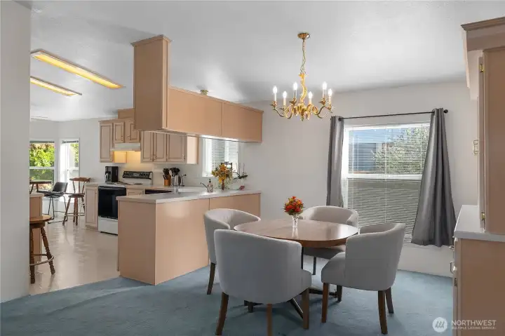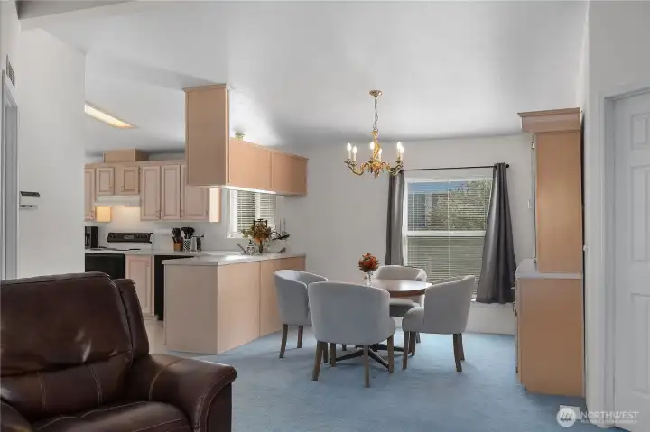Spacious 3 bed, 2 bath home in Tumwater's desirable Eagles Landing 55+ community. *Carpet Credit with accepted offer* Located on a quiet corner lot just minutes from shopping, dining, and services. Open floor plan features vaulted ceilings, maple cabinetry, and an eat in kitchen with sunny breakfast nook. Enjoy a large dining area, living room, and versatile den. The primary suite includes a soaking tub, separate shower, and ample closet space. Relax in the low-maintenance backyard with mature trees and private patio. Two-car garage adds extra convenience - perfect for easy living and entertaining.