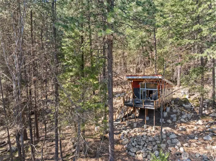 Discover a tranquil escape tucked away on 1.65 private acres, offering a rare blend of secluded nature and incredible convenience just five minutes from the heart of Leavenworth. This 444-square-foot sanctuary is designed to maximize its footprint, featuring an open-concept layout that invites an abundance of natural light throughout the day. The living area transitions seamlessly to an expansive deck, creating an ideal space for quiet mornings or relaxing evenings surrounded by a lush canopy of trees. With one bedroom and a 0.75 bathroom, this home serves as an efficient retreat for those seeking a minimalist lifestyle or a dedicated getaway in the woods. The surrounding landscape provides a genuine sense of privacy, creating a peaceful environment where the sights and sounds of nature take center stage. Whether you are looking for a weekend adventure base or a quiet place to call home, this property offers a unique opportunity to own a slice of the Pacific Northwest. Enjoy the best of both worlds with world-class recreation nearby and a private wooded haven to return to at the end of the day.