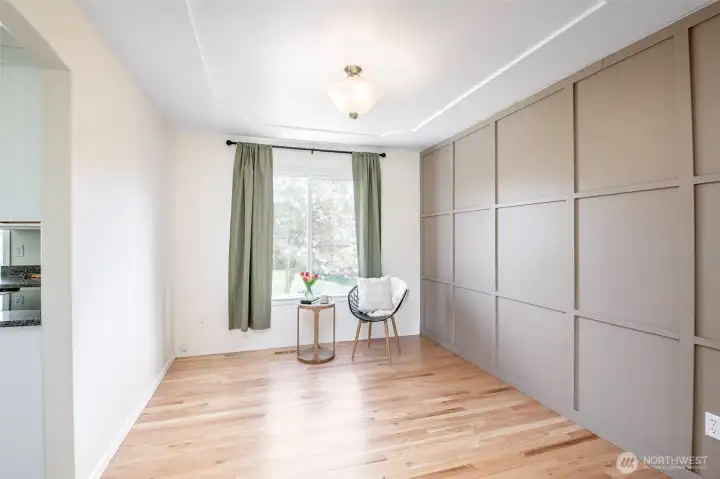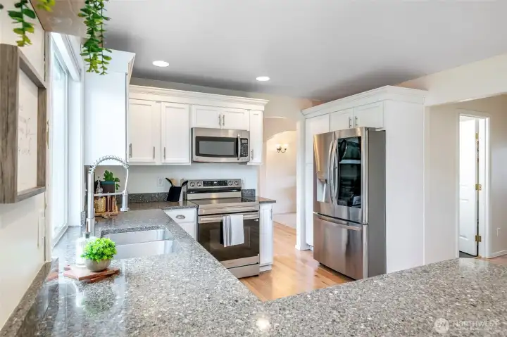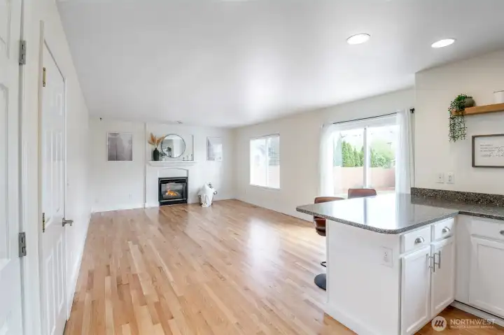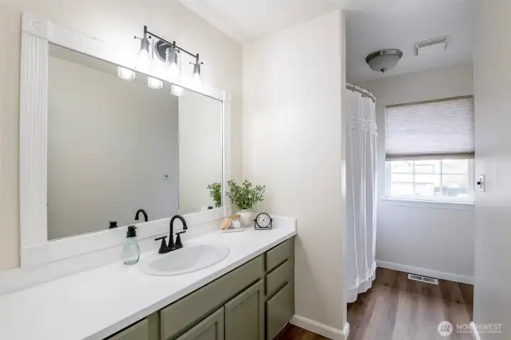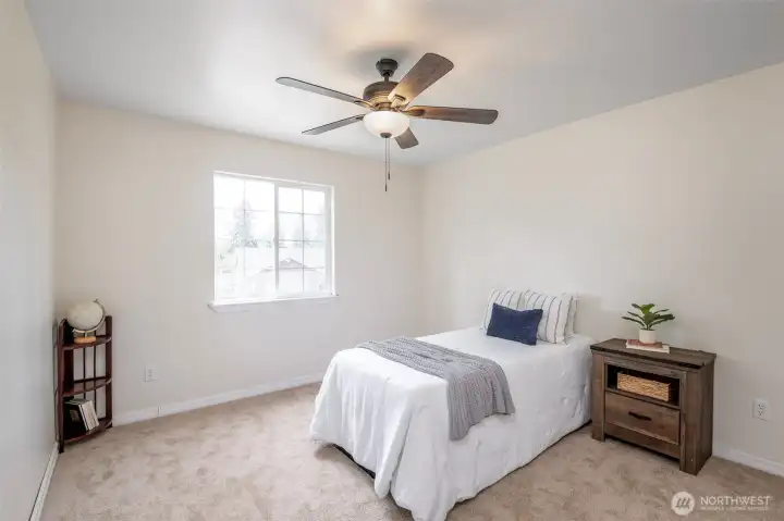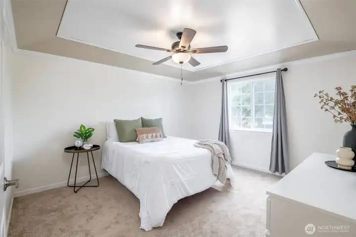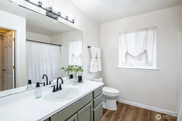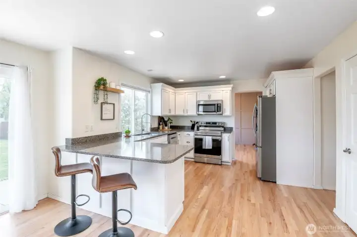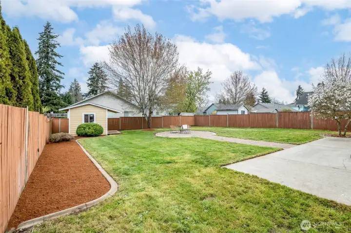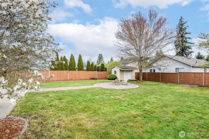 Beautifully maintained home in the desirable Huntington Greene neighborhood! A welcoming front porch sets the tone as you enter into a light-filled formal living room that flows seamlessly into the formal dining space, complete with a stylish accent wall. The beautifully updated kitchen features white painted cabinetry, granite countertops, stainless steel appliances, and abundant lighting and storage. Cozy up in the inviting living room with a fireplace and mantle, or step through the slider to enjoy the back patio. Upstairs, the spacious primary suite offers a relaxing bath and a large walk-in closet with built-ins, along with three additional guest bedrooms and a full guest bath. This home shines with freshly refinished hardwood floors, brand new carpet throughout, freshly painted interior, and updated bathrooms. The roof is only 6 years old for added peace of mind. Outside, enjoy a HUGE park-like fully fenced yard complete with a firepit and outbuilding—perfect for extra storage or a charming shed! Conveniently located just minutes from shopping, dining, and schools, with an easy ~30-minute commute to JBLM!
