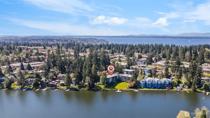 Top-floor corner unit with stunning lake views from the living room, kitchen, and primary bedroom. This light-filled 2-bedroom home features a spacious and functional layout with great natural light throughout, creating a warm and inviting atmosphere. Step out onto the large private balcony and take in peaceful water views, perfect for relaxing or entertaining. Located in a well-maintained building with elevator access, offering convenient, stair-free access to the unit. The community includes a private yard and dock access, providing a rare opportunity to enjoy a true waterfront lifestyle. HOA dues cover water, sewer, and garbage, adding to the ease of ownership. Additional highlights include in-unit laundry, a designated off-street parking space in a highly desirable location directly in front of the building, and an included storage unit for added convenience. The interior offers a cozy, classic feel and presents a great opportunity for updates and customization to match your personal style, making it ideal for both owner-occupants and investors looking for value-add potential. A rare chance to own a top-floor corner unit with views, privacy, and strong upside in a peaceful and desirable setting.