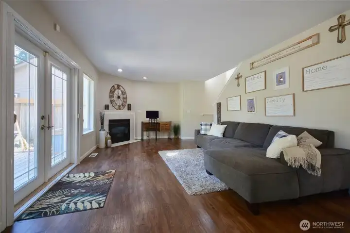 Delightful home in the coveted Olympia School district. This 2,174sf home lives large offering very versatile space to meet all your needs. A formal living room, a dining area, a breakfast nook & a gorgeous kitchen are great for entertaining. The family room has a cozy fireplace & French doors leading out to a big deck for summer fun. The upper level offers a large main bedroom with a spa-like bathroom. Two other bedrooms share another full bathroom. To top it off a gigantic rec room (with closet) offers fun space, office or gym, to use as you wish. There's more: laminate floors, quartz counters, A/C, roof and siding in 2019 & a huge private back yard. Minutes from amenities and easy drive to JBLM.