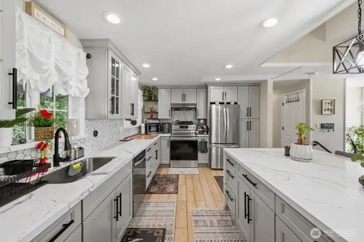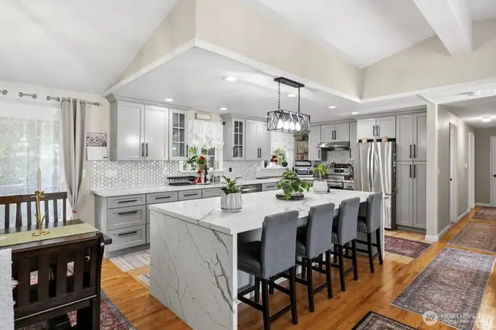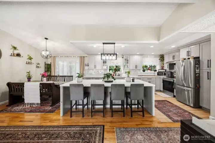 First time on market in over 20 years, this well-cared-for 4BD/2.75BA home offers versatility, thoughtful updates, and a prime Shoreline location. Main home features 3 bedrooms and 1.75 bathrooms, complemented by a fully remodeled kitchen and upgraded baths with clean, modern finishes. Hardwood floors run throughout, creating a warm, cohesive feel, and large windows bring in great natural light. Lower level includes a fully redone 1BD/1BA separate unit with its own entrance, kitchen, living area, and private feel—ideal for rental income, guests, or multigenerational living. The bright main level opens to a deck, perfect for relaxing or entertaining. Set on a 7,200 sq ft lot, the fully fenced, wraparound yard provides space to garden, play, or unwind, complete with a dedicated flower and herb bed, mature landscaping, and room for outdoor dining. Located on a quiet street just minutes to the Shoreline light rail station and I-5, offering easy access to Seattle and beyond. Twin Ponds Park is just a block away, adding nearby trails, water features, and green space to enjoy. Two-car garage provides added storage, parking, and workspace potential with an additional dedicated parking pad for guests and plenty of street parking. Pre-inspected for buyer peace of mind and situated in a highly regarded school district, this home combines comfort, flexibility, and location in one of Shoreline’s most accessible neighborhoods.