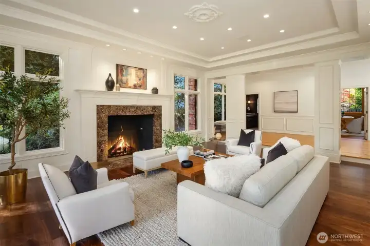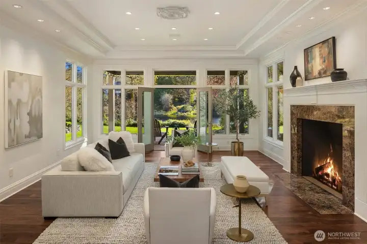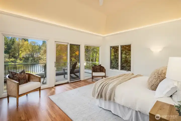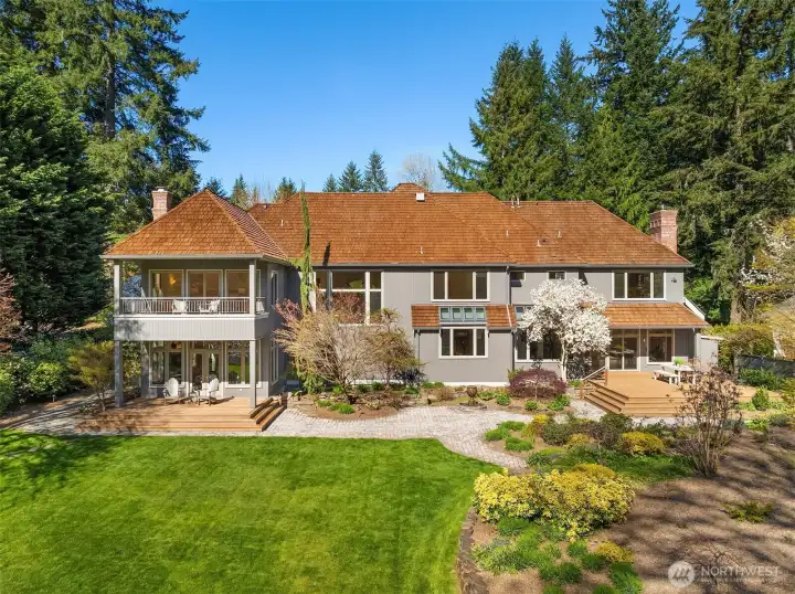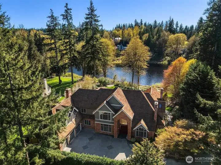 Discover majesty & privacy at this tranquil home in Lake of the Woods, one of Woodinville’s most sought-after communities. Sited on a shy acre on Welcome Lake, this residence offers 152 feet of waterfront, level lawn, multiple outdoor living areas, and lush landscaping. An impressive entry welcomes you into light, airy and generous interiors offering a space for every need. Quality craftsmanship shines with gorgeous millwork and details throughout, while western light fills the main living spaces with a lovely golden glow. The chef’s eat-in kitchen allows room for many cooks with multiple work stations and huge walk-in pantry as well. The handsome main-floor office is an ideal space for those working from home. Desirable floor plan with 4 bedrooms on the upper level including a primary suite with private balcony out to the view. A media room completes the upper level. 3-car garage (+lift) and ample room for guest parking. All this just minutes from Wine Country, recreation, golf, and all the amenities you love in the Pacific Northwest. Throw your kayak in the lake and soak it all in!