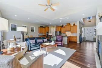 Welcome to comfortable & relaxed living in this absolutely pristine Hemlock plan home offering 2 bedrooms, 2.5 baths and a den. Sited on a private greenspace lot that backs to the golf course, you’ll enjoy the outlook 365 days a year. Just two blocks from the clubhouse so you can walk there in minutes. From the courtyard entry to the dramatic foyer and the open great room with vaulted ceilings, and gorgeous, durable Luxury Vinyl Plank floors this home has it all. The kitchen has 42” cabinets, slab granite counters and a full tile backsplash. The serene primary bedroom has two walk-in closets with organizers, and the en-suite bath includes dual vanities, a step-in shower and soaking tub. The office has solid doors to hide a messy desk, and the closet means it could be a 3rd bedroom. The second primary bedroom is also en-suite with a full bath. The south facing backyard has an oversized patio surrounded by garden space with mature, specialty plantings and a charming water fountain at one end. 50 YEAR ROOF in 2024 with a transferrable warranty. New furnace in 2019 and air con in 2013. Two car garage with an epoxy floor, hanging storage & a pull-down ladder for attic storage access. Golf cart garage for your sports car, shop or storage. Trilogy is more than just a place to live; it's a true community and a lifestyle filled with amenities like pickleball and tennis, an indoor swimming pool & spa, an array of clubs, and miles of scenic walking trails. Pre-inspected. Ages 55+