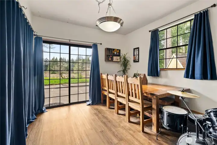 Dining room with french doors leading to the spacious deck.