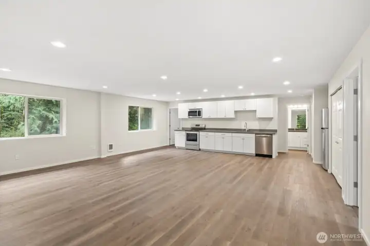 Another view of kitchen. The walkthrough is large enough for a wheelchair to pass through w/ the dishwasher door open.