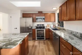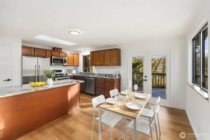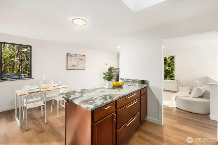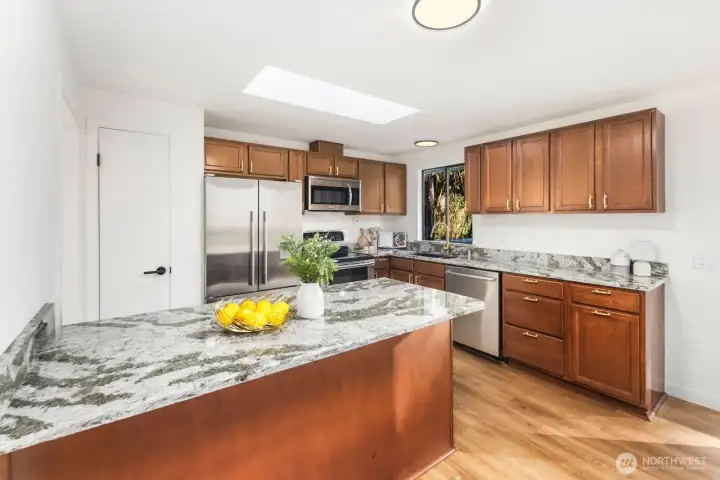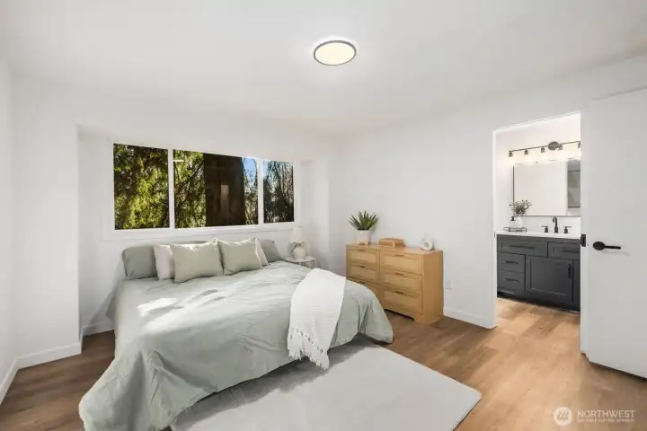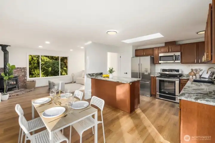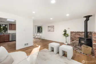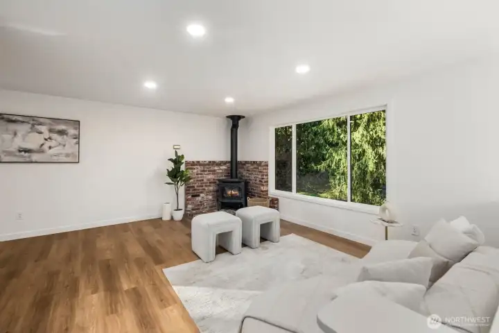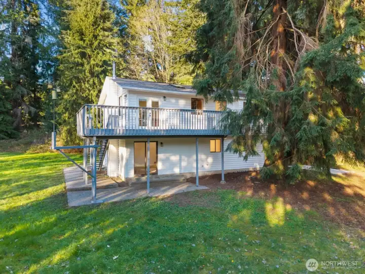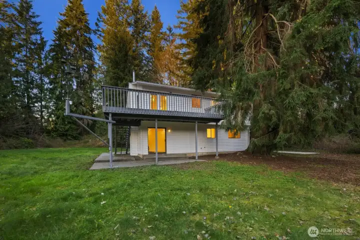 Privately set on 5.14 acres in Lake Stevens, this thoughtfully updated 3-bedroom, 2-bathroom home delivers refined interior living and expansive, secluded grounds. Towering evergreens and mature tree coverage create a natural canopy of privacy, the kind of setting increasingly hard to find in Snohomish County. Inside, targeted updates elevate the key spaces. A well-appointed kitchen features a statement island, granite countertops, stainless appliances, and a skylight that floods the space with natural light. A wood-burning stove adds warmth and character throughout. Step outside from the kitchen onto the private deck, a seamless extension of the living space for entertaining or taking in the forested backdrop. The primary suite serves as a true retreat, complemented by a spa-inspired bath featuring floor-to-ceiling stone tile, matte black fixtures, and a quartz vanity. Two additional bedrooms and a second updated bath complete the accommodations. An attached two-car garage, 5+ acre lot, and a setting defined by stillness and seclusion make this a move-in ready offering where privacy, acreage, and the Pacific Northwest converge.