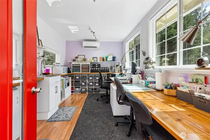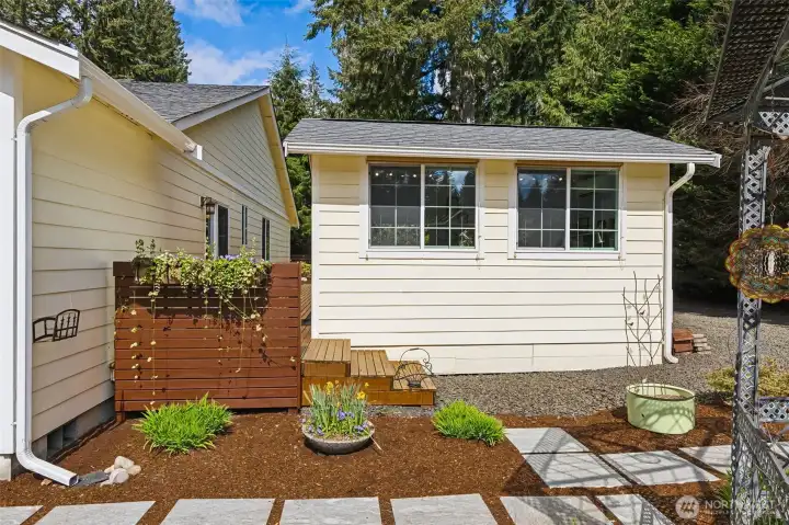 Single Story CHARMER in Delphi Country Club! You'll love this meticulously cared for and upgraded home with 1528 SF and a versatile, detached, 160 SF ART STUDIO/Office/Flex Space! Hardwood flooring throughout home (NO carpet, vinyl in bath/utility), vaulted ceilings, SPLIT floor plan for maximum privacy, HEAT PUMP (Air Con), gas fireplace, gorgeous quarter acre+ lot. Your lush, PRIVATE yard is a perfect retreat with stunning landscaping and beautiful deck. Don’t overlook the whole home GENERATOR and RV parking w/water & elec! Primary suite with dual vanity (separate from WC), walk-in closet, sliding door to deck and studio. Inviting great room with thoughtfully designed kitchen with island, stainless appliances, gas range, pantry, skylights, vaulted ceiling, gas fireplace, sliding door to deck. Utility/Mud room connects to garage--excellent storage and counter space! Detached Studio offers warm wood counters, utility sink (with hot & cold water) and dedicated heat pump (air con)! Sweet gazebo and low maintenance front yard. Water included in HOA dues, no separate water bill! 50 year roof. Ample parking! You are going to love calling this HOME!