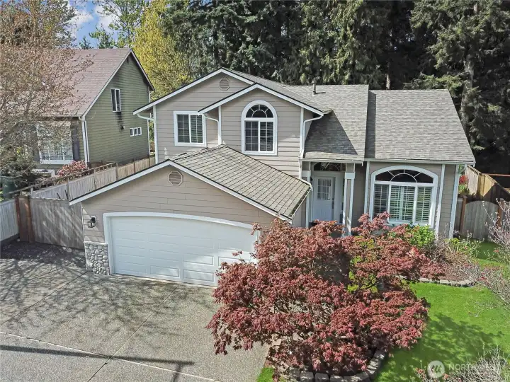 Beautifully updated McClellan Ridge tri-level offering 2,247 sq ft with 4 bedrooms and 2.75 baths, tucked into a quiet cul-de-sac and backing to a protected greenbelt for added privacy. This home blends classic design with extensive recent upgrades, including new cement plank siding, a new 50-year roof with transferable warranty, and a heat pump for efficient year-round comfort. Thoughtfully designed living spaces include formal living and dining areas, while the kitchen with stainless steel appliances opens to a welcoming family room with gas fireplace. The lower level features a bedroom and 3/4 bath, along with a beautifully enhanced family room—now featuring additional, newly added windows that bring in significantly more natural light than the original design, creating a bright, comfortable, and highly livable space. Upstairs, the spacious primary suite offers an en-suite bath and walk-in closet, along with two additional bedrooms and a full bath. Recent improvements continue with updated flooring throughout and a new garage door. The 2-car garage includes an electric vehicle charger, and the generous lot offers RV parking. Located in the highly regarded Snohomish School District with easy access to Mill Creek amenities and major commuter routes.